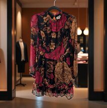 Anthropologie Porridge Puff Sleeve Open Back Floral Mini Dress Black SIZE Medium