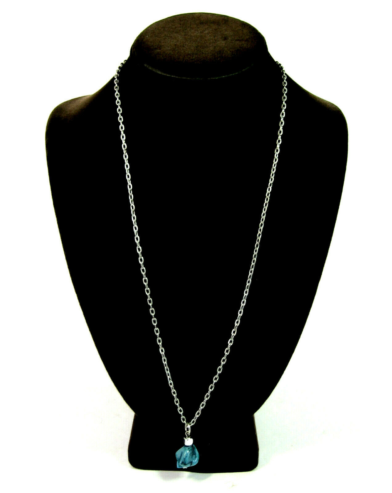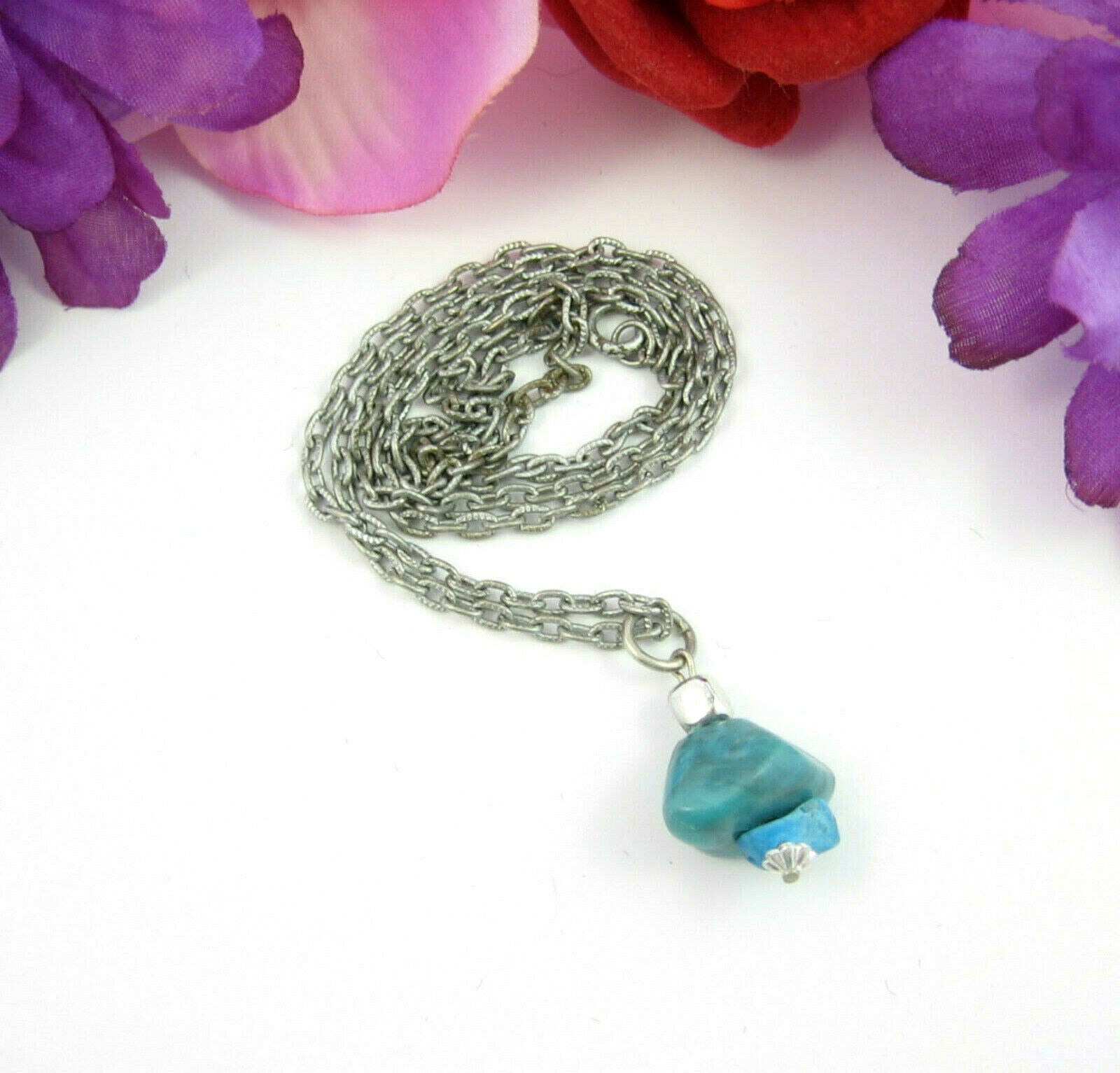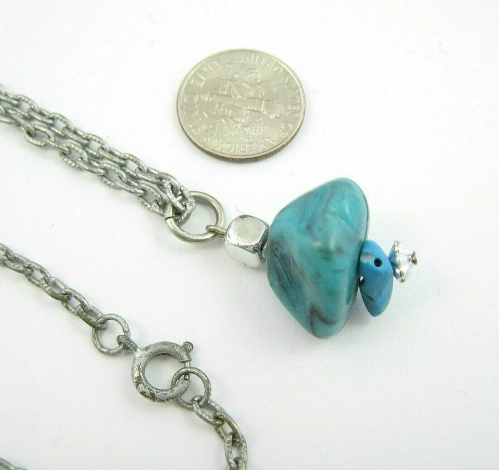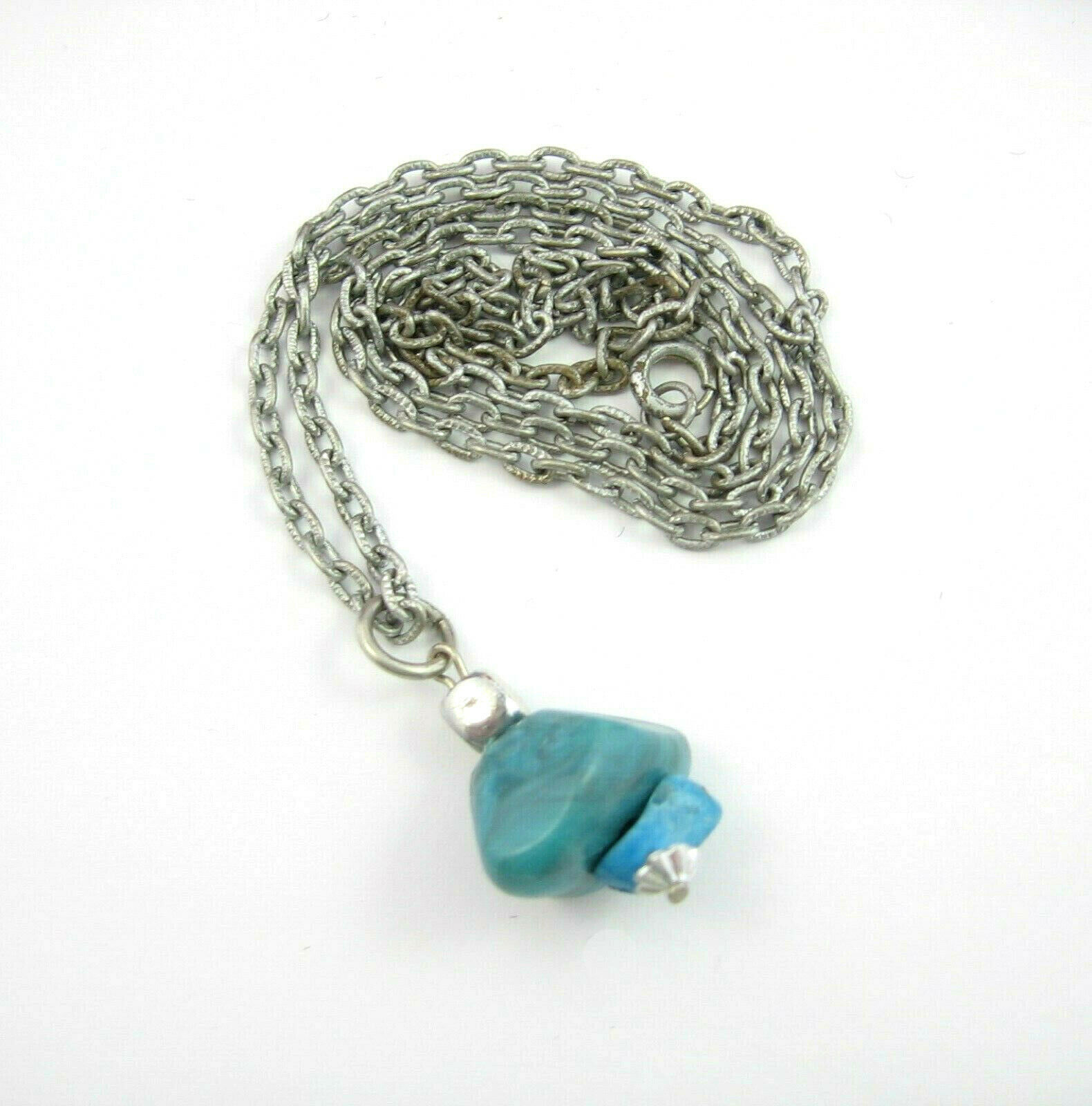 Faux Imitation TURQUOISE BLUE PENDANT Vintage Necklace Silvertone 24" Chain