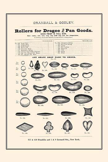 12inch x 18inch Poster Page from the wholesale catalog of Crandall Godley; manufacturers, importers, and jobber of baker's, confections, and hotel supplies. Based in New York city. - There is a border around the image. Image size is correct.