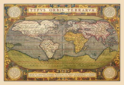 12inch x 18inch Poster Abraham Ortelius (also Ortels, Orthellius, Wortels; 14 April 1527 ? 28 June 1598) was a Flemish cartographer and geographer, generally recognized as the creator of the first modern atlas, the Theatrum Orbis Terrarum (Theatre of the World). There is a border around the image. The image size is correct.