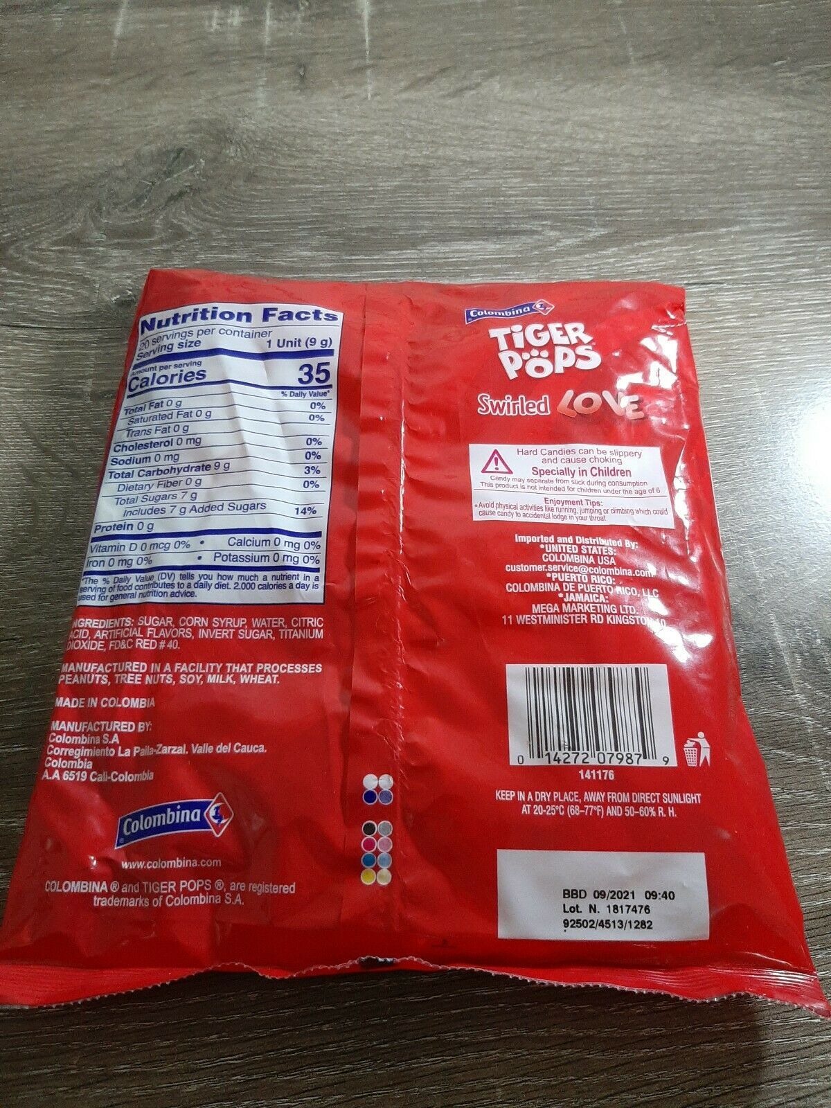 (1) Colombina 6.3 Oz Bag Tiger Pops Lollipops Swirled Love Strawberry+Cream .