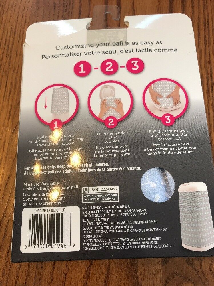 Playtex Baby DIAPER GENIE Expressions Designer Fabric Cover Sleeve Blue Tile
