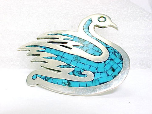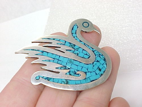 Swan Pendant/Brooch Pin Inlaid Turquoise 950 and 10 similar items