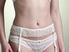 BLUSH LINGERIE GARTER Belt NAKED Envy LACE Floral Vanilla White ( S )