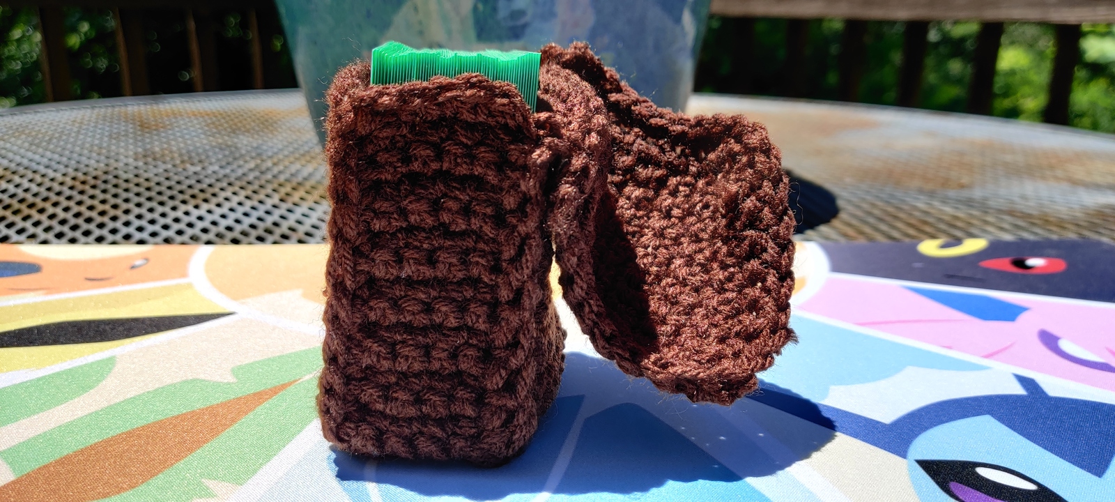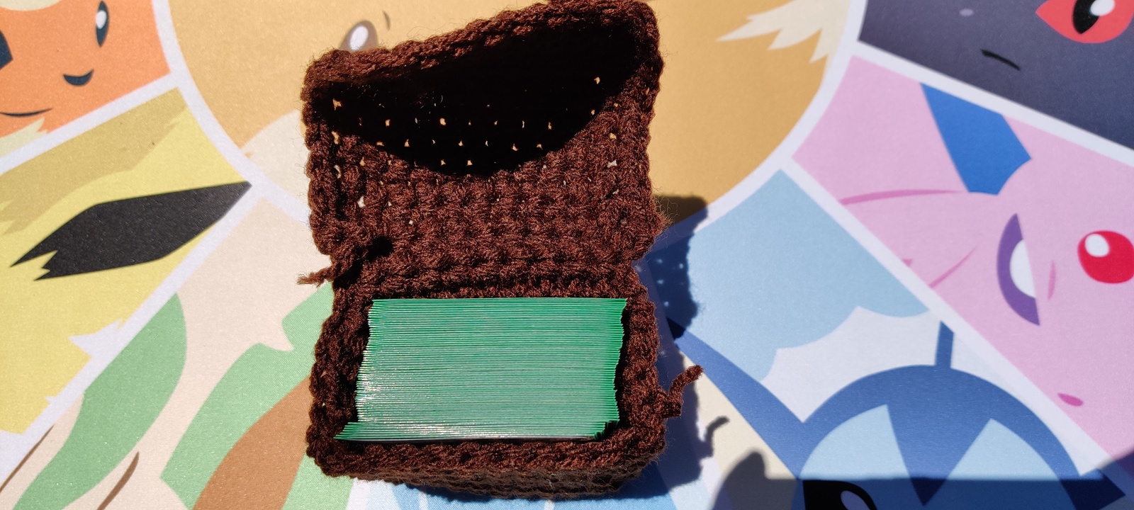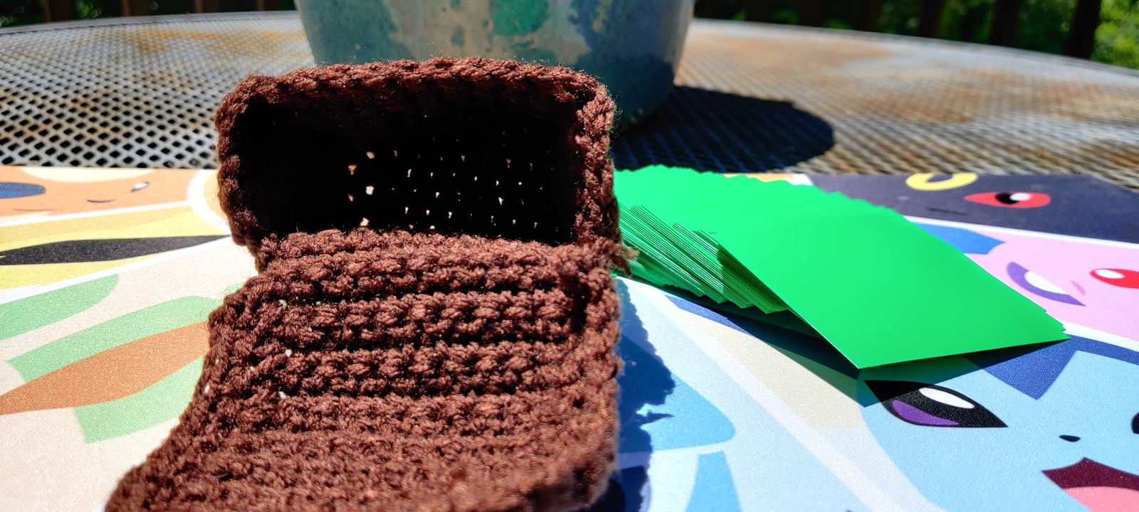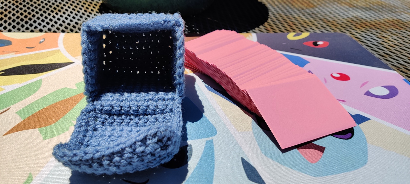 Handmade, crochet deck "box" perfect for storing your deck when you head out for a tournament or casual game at your LGS or friends. Fits standard trading card games in a single sleeve. Choose from 60 card or 100 card deck sizes.