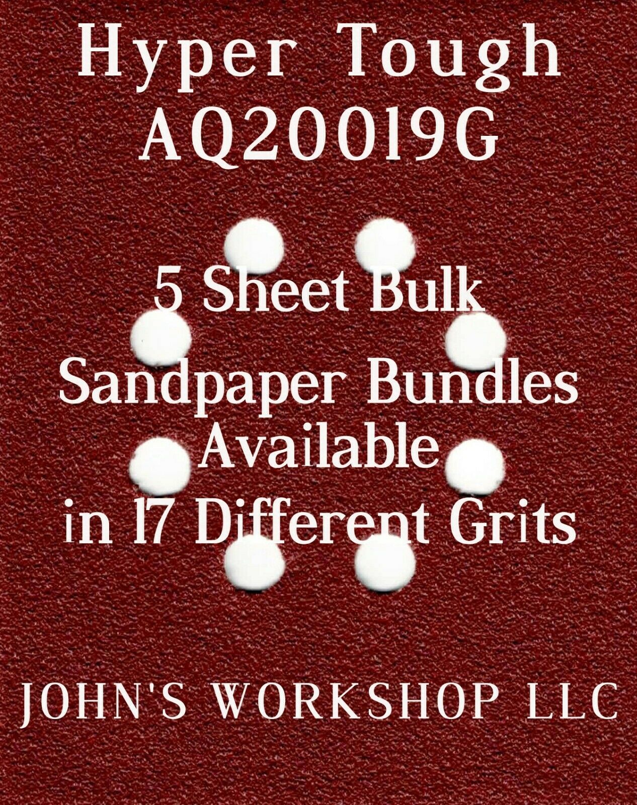 Hyper Tough AQ20019 - 1/4 Sheet (4.5x5.5") - PrePunched - 5 Sheet Bulk Sandpaper Bundles Available in 17 Different Grits