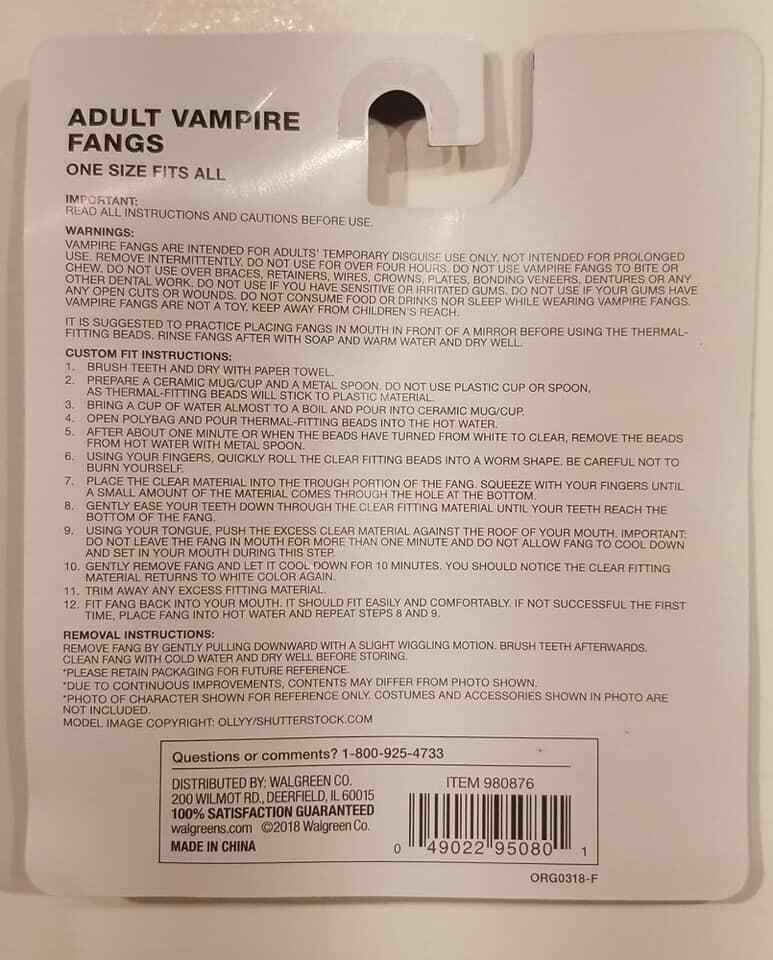 Happy Halloween Adult Vampire Fangs One Size Fit All (LOC TUB L-23)