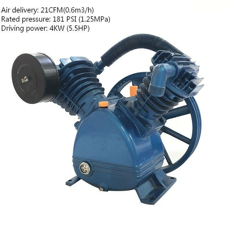 V-Type Twin Cylinder Air Compressor Pump Head Double Stage 181PSI 5.5HP 21CFM