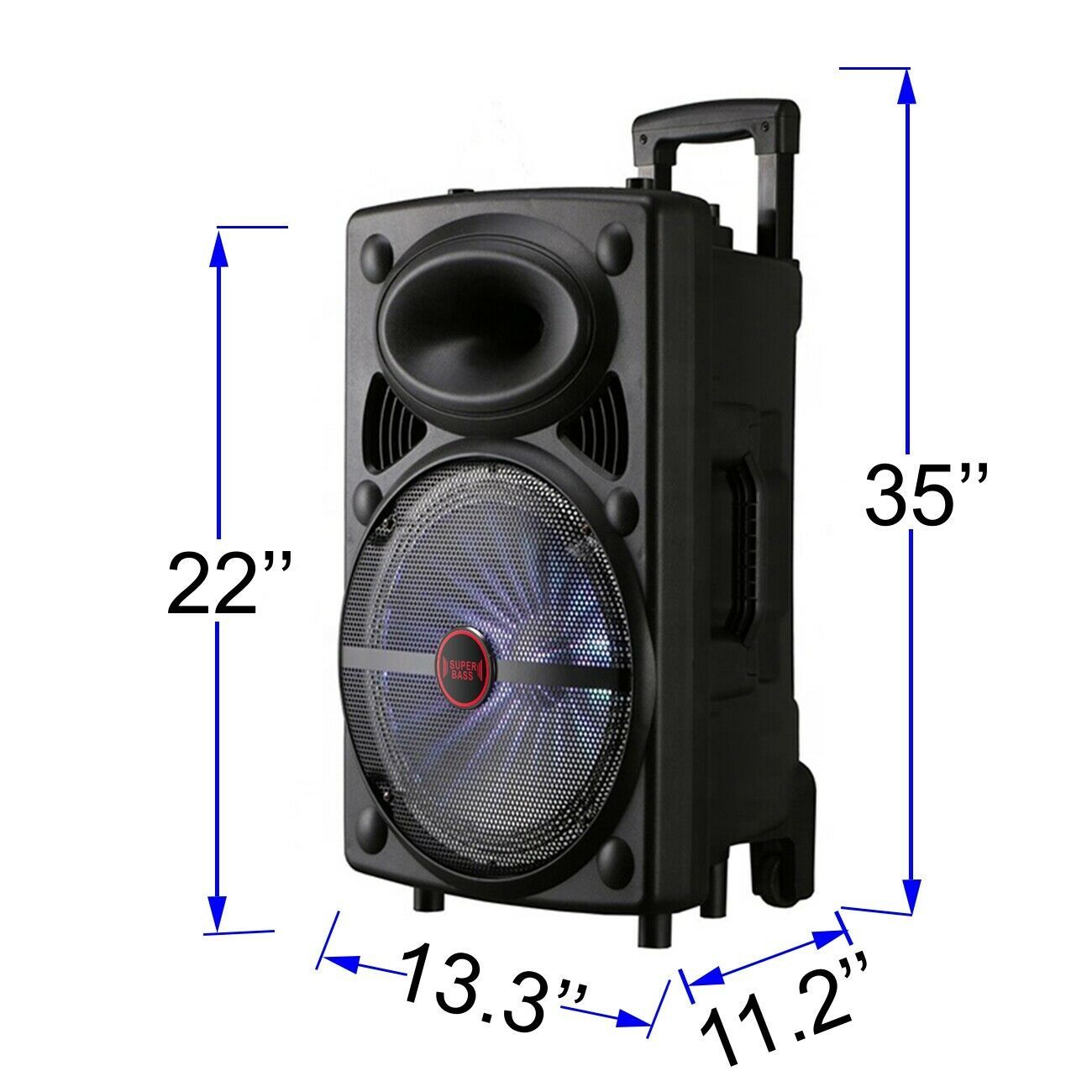 12" Standing portable battery wireless speaker that supports wireless microphone in the color black