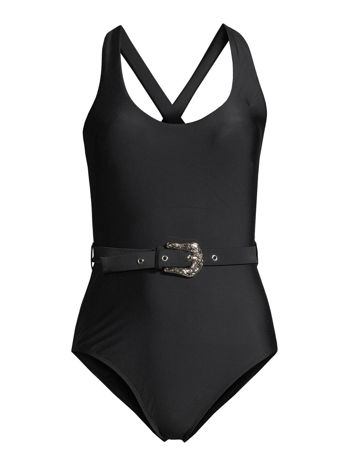 Ride the wave. No Boundaries' Western inspired bathing suit shakes up the beach scene with a big silver buckle.