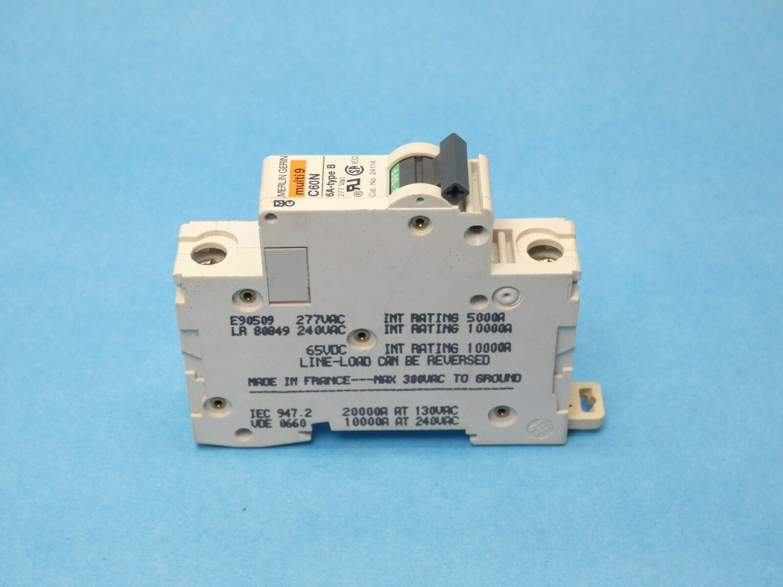Square D Merlin Gerin MG24114 Circuit Breaker 1 Pole 6 Amp 480Y/277V Used