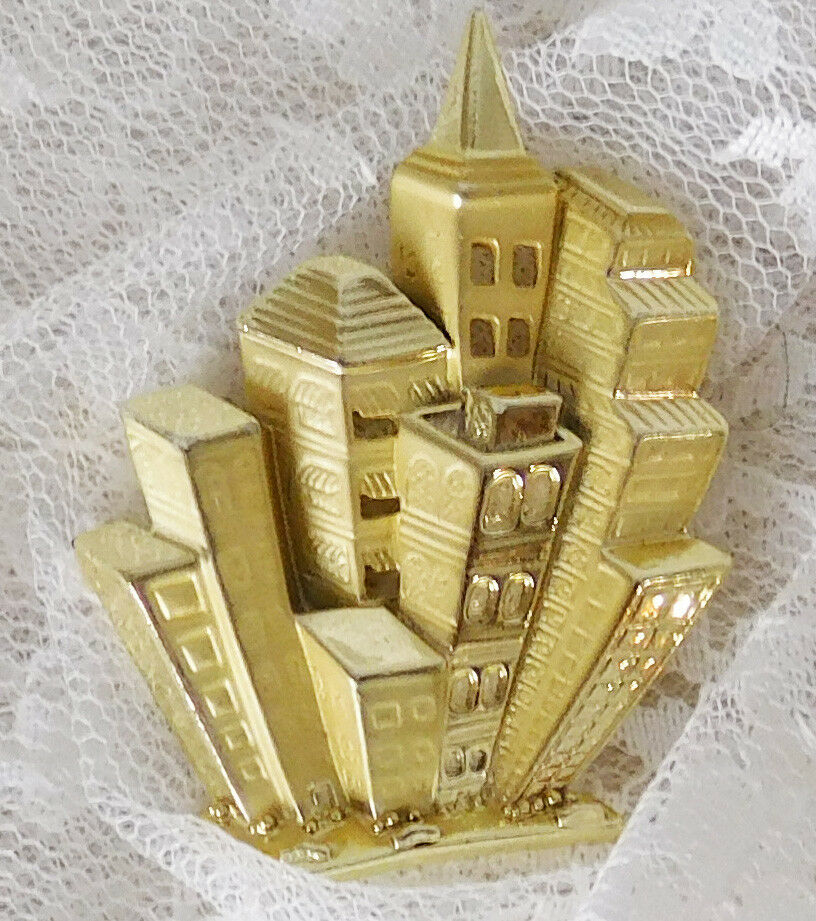 City Skyscraper Metal Pin Brooch - 2 1/2" Tall x 1 1/2" Wide - Super Cute! Excellent Used Condition - See Photos for further description.