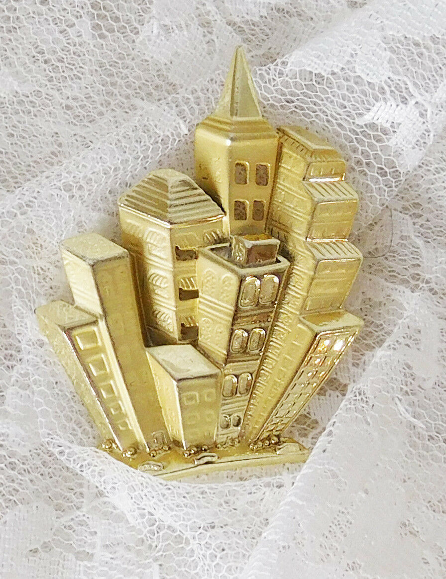 City Skyscraper Metal Pin Brooch 2 1/2" Tall and similar items