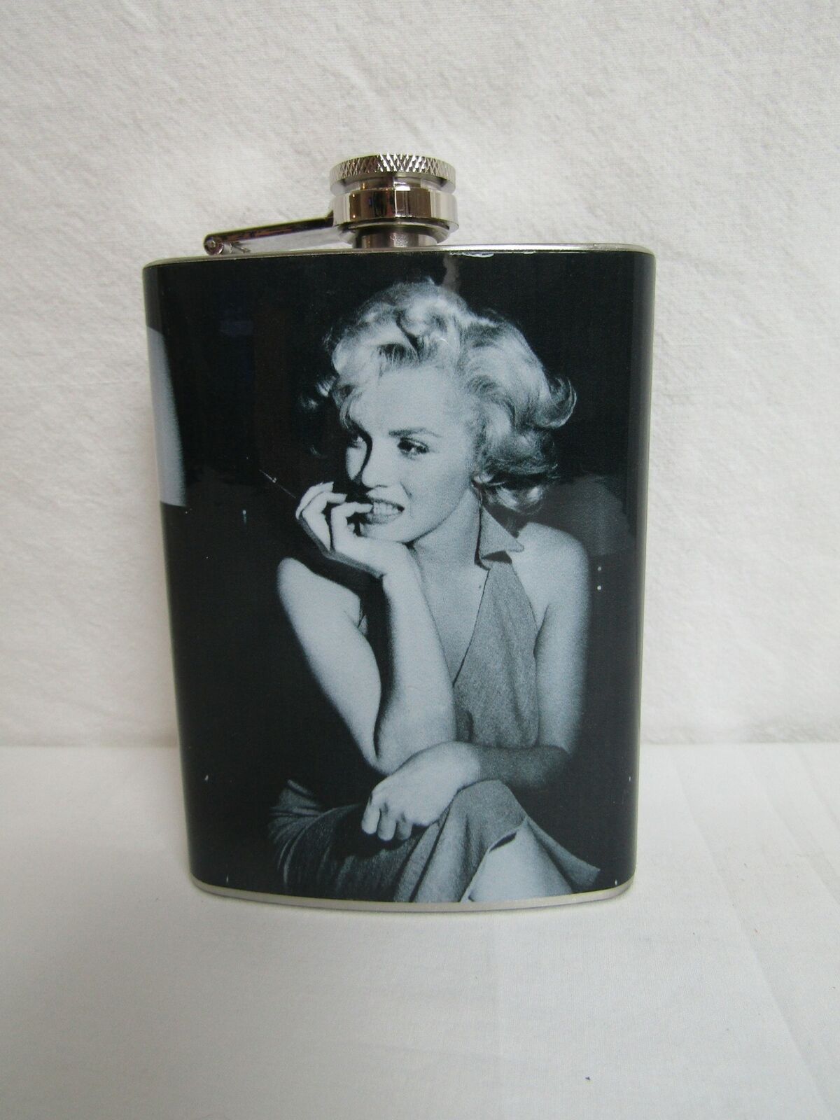 Marilyn Monroe Black White Hand on Chin Stainless Steel 8oz. Hip Flask FC2M3