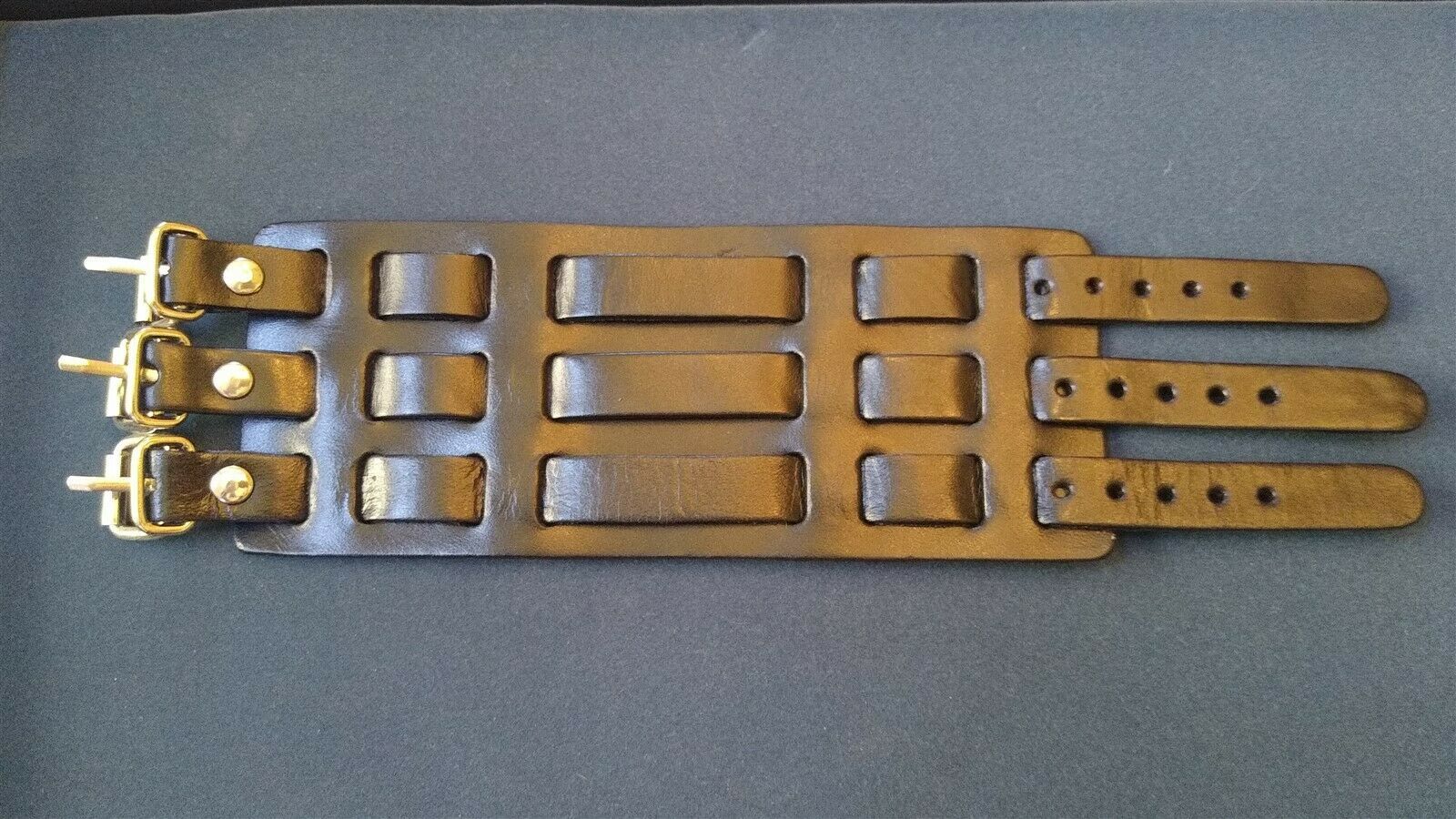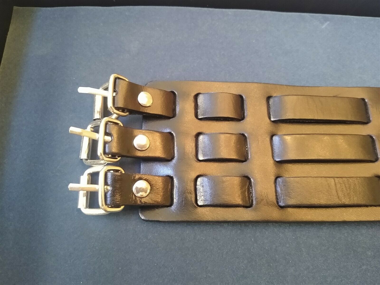 Black Leather Cuff Bracelet - 3 inches Wide with 3 Buckles. Be a Rockstar! ~New~