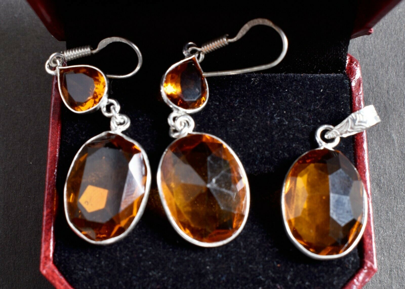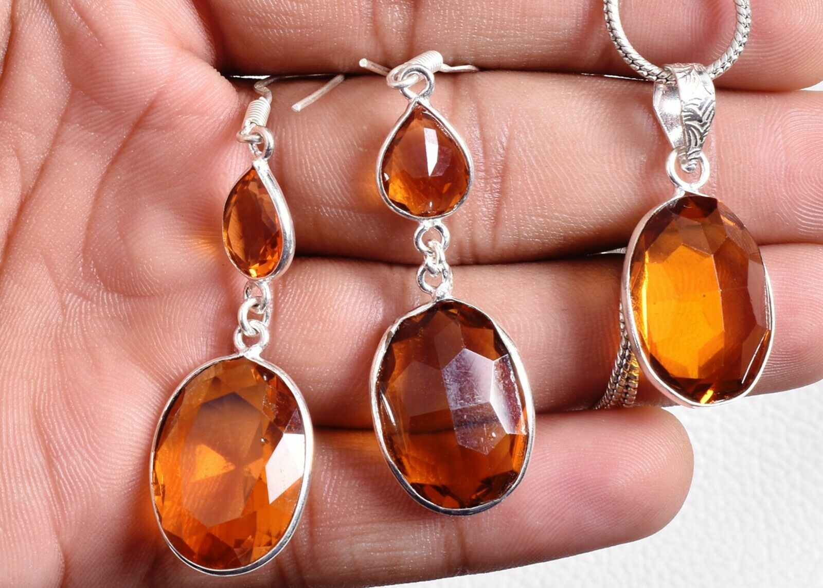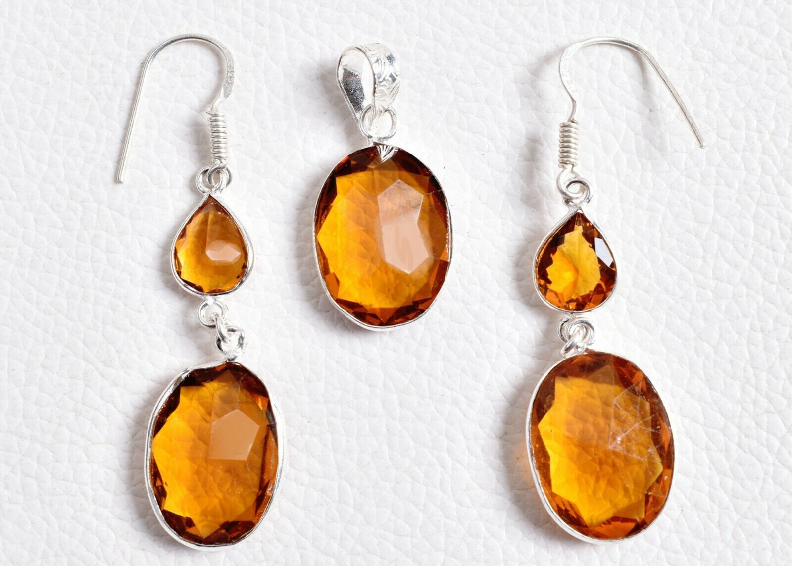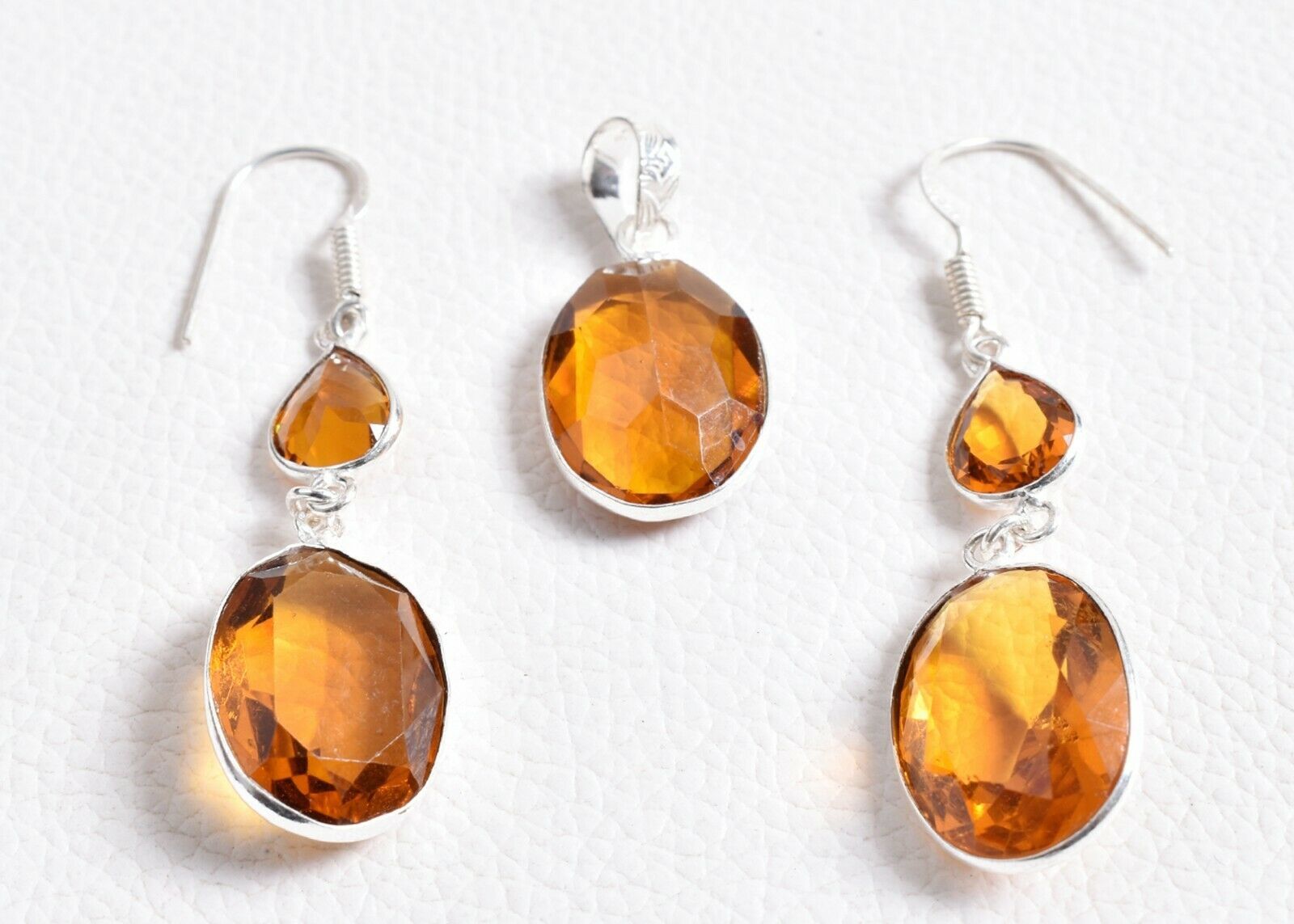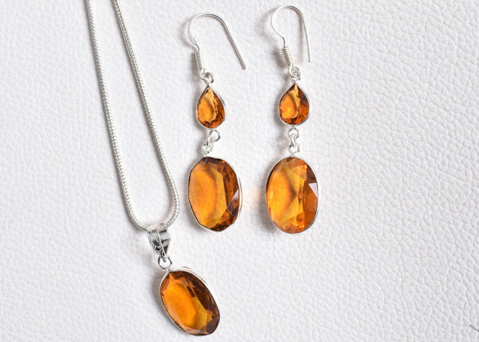 925 Sterling Silver Citrine Gemstone Handmade Necklace Earrings Her Gift SET1014