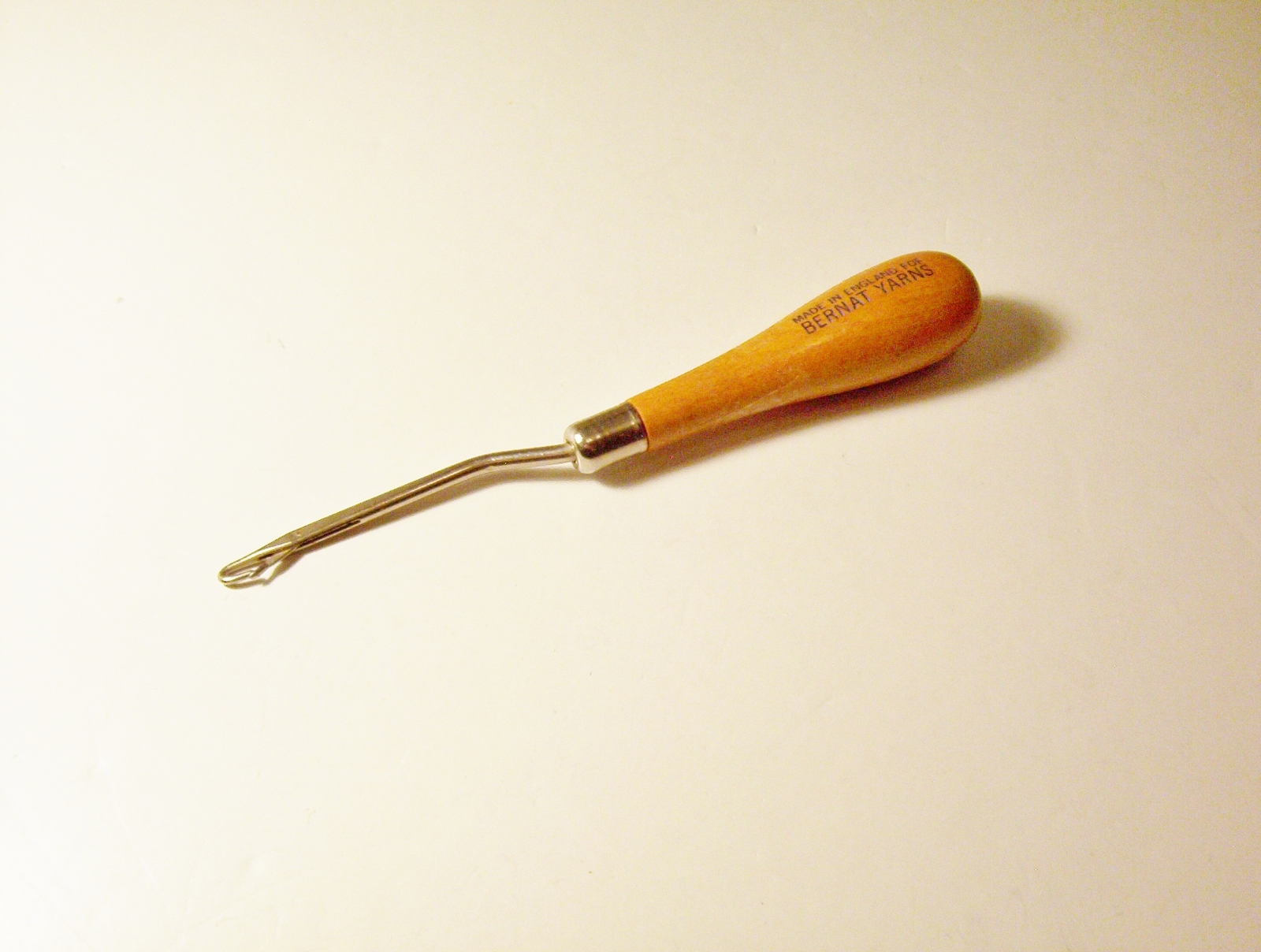 Vintage Latch Hook Rug Wood Handle Made in England Bernat Yarns