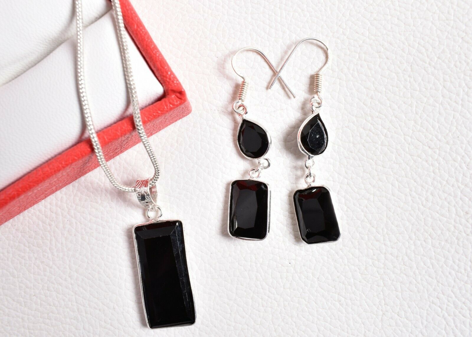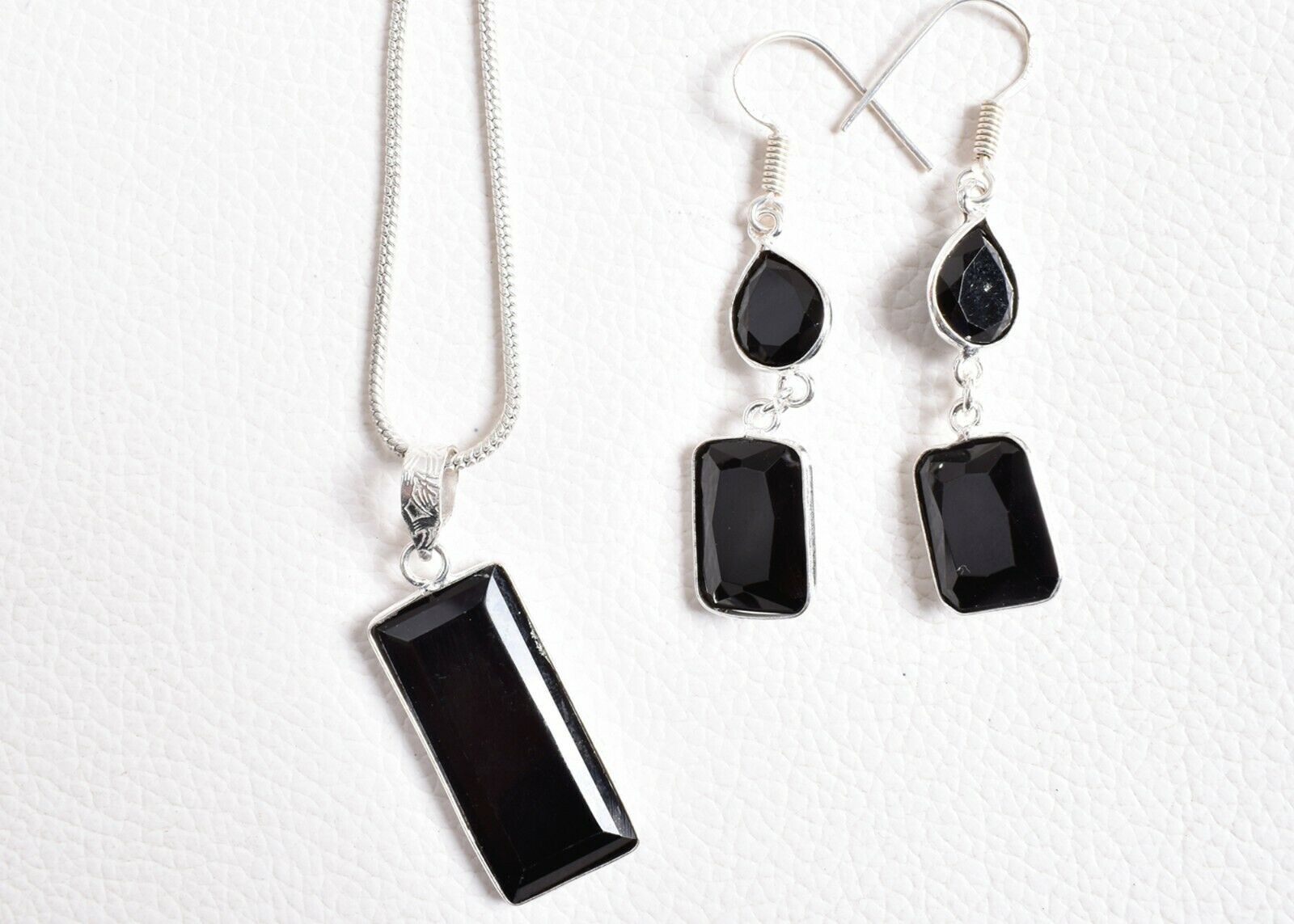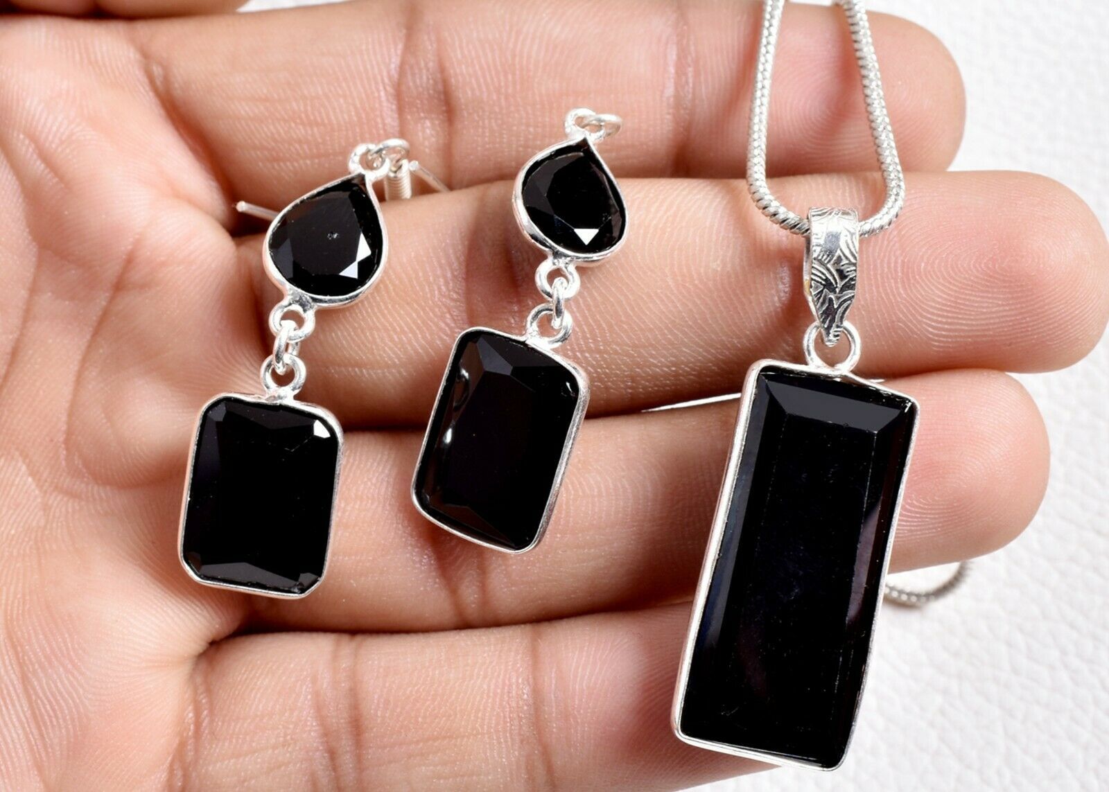 925 Sterling Silver Black Onyx Gems Handmade Necklace Earrings Her Gift SET1023