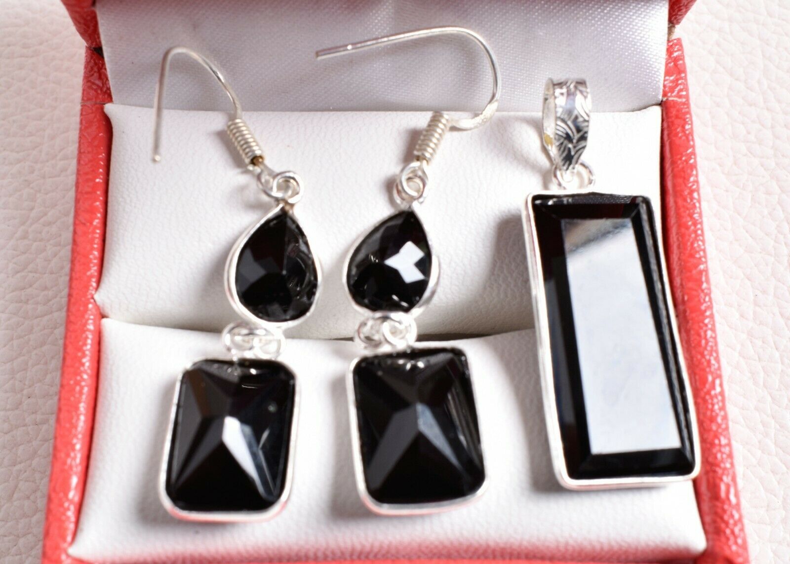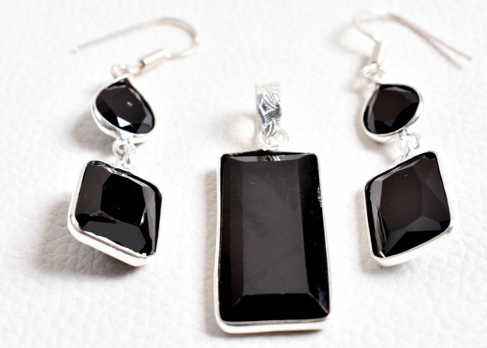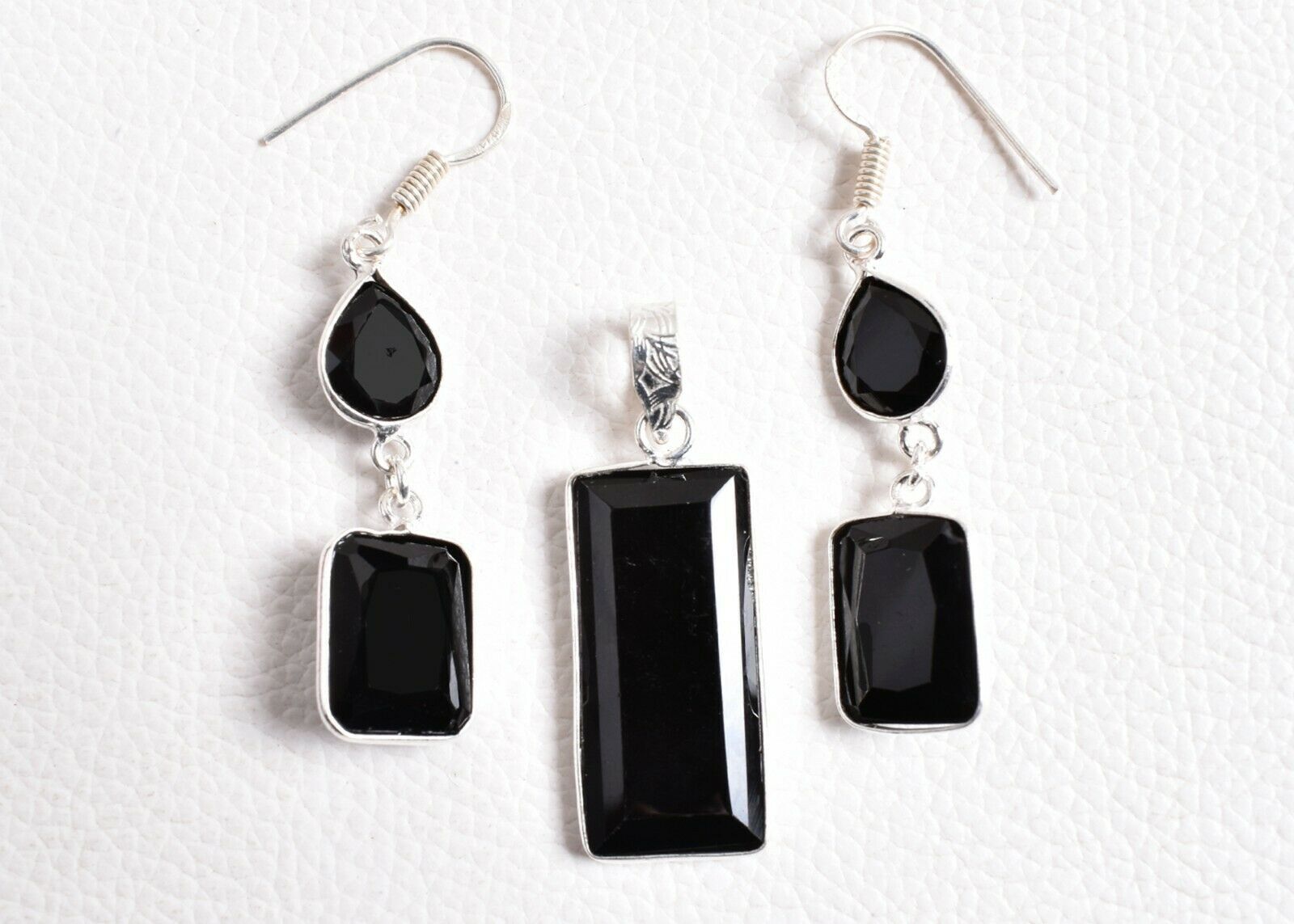 925 Sterling Silver Black Onyx Gems Handmade Necklace Earrings Her Gift SET1023