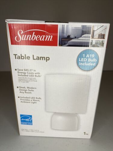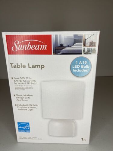 WHITE LED DESK TABLE LAMP SUNBEAM RUBBERMAID WARM WHITE A19 A 19 BULB LIGHT.