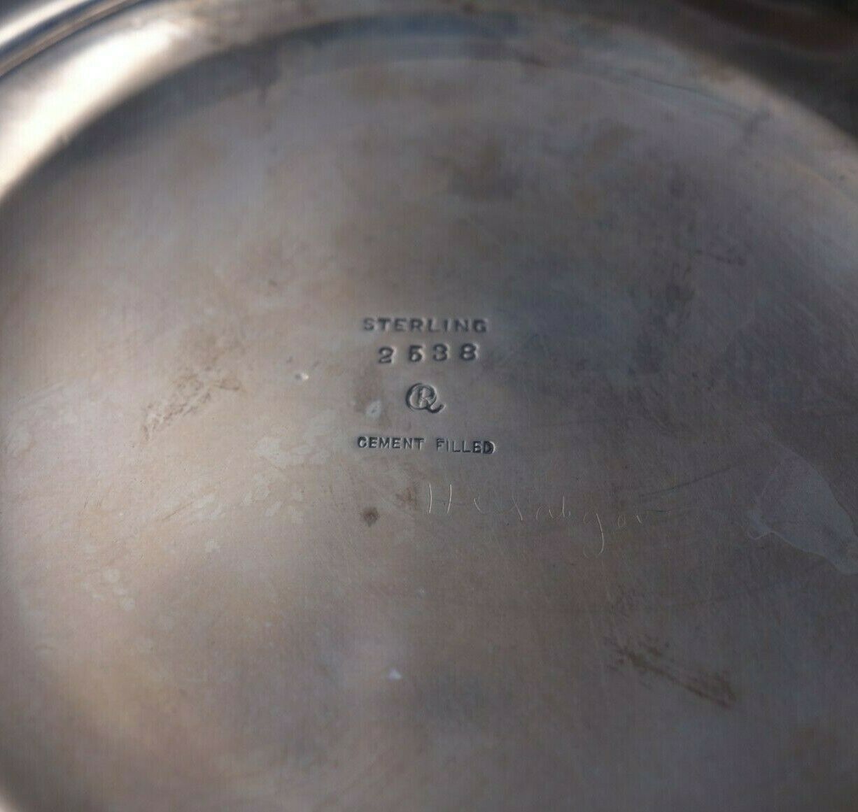 Wonderful Gadroon (marked "R") sterling silver candlestick pair #2538, circa 1930. The pieces measure 12 1/4" tall x 5 3/4" and are weighted. The candlesticks are not monogrammed and are in good vintage condition as shown in the photos. Terrific!