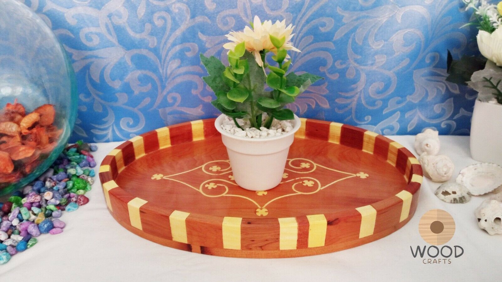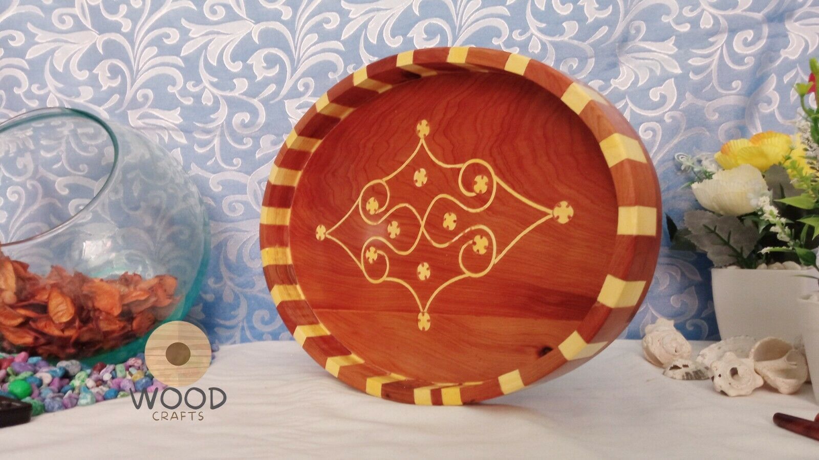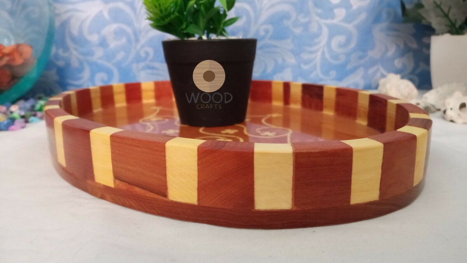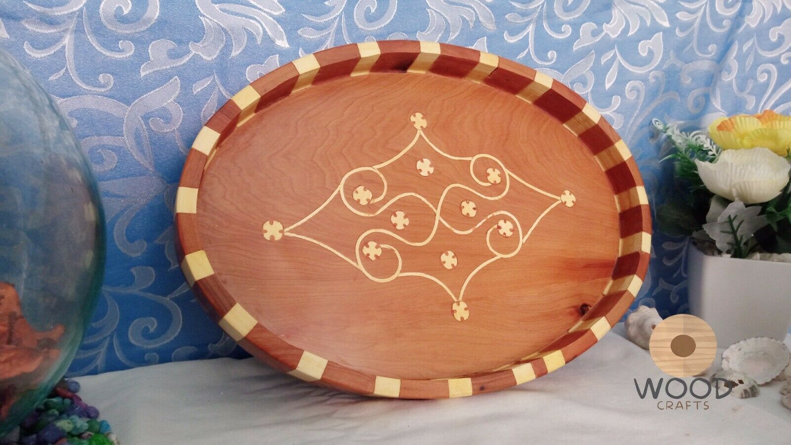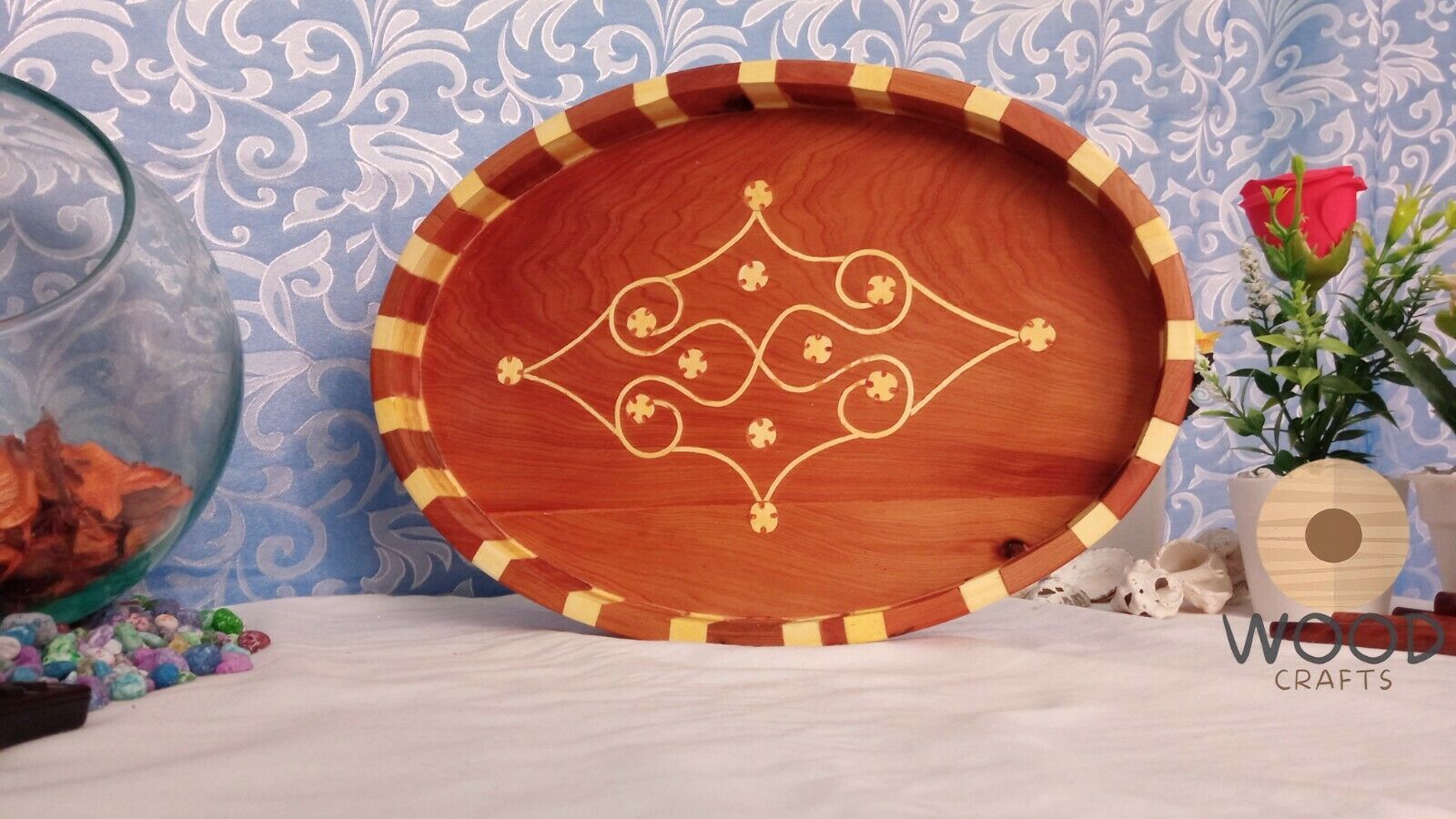 Amazing small Wooden Ova handcraftsl Wood Art Tray Handmade in Morocco Woodcraft