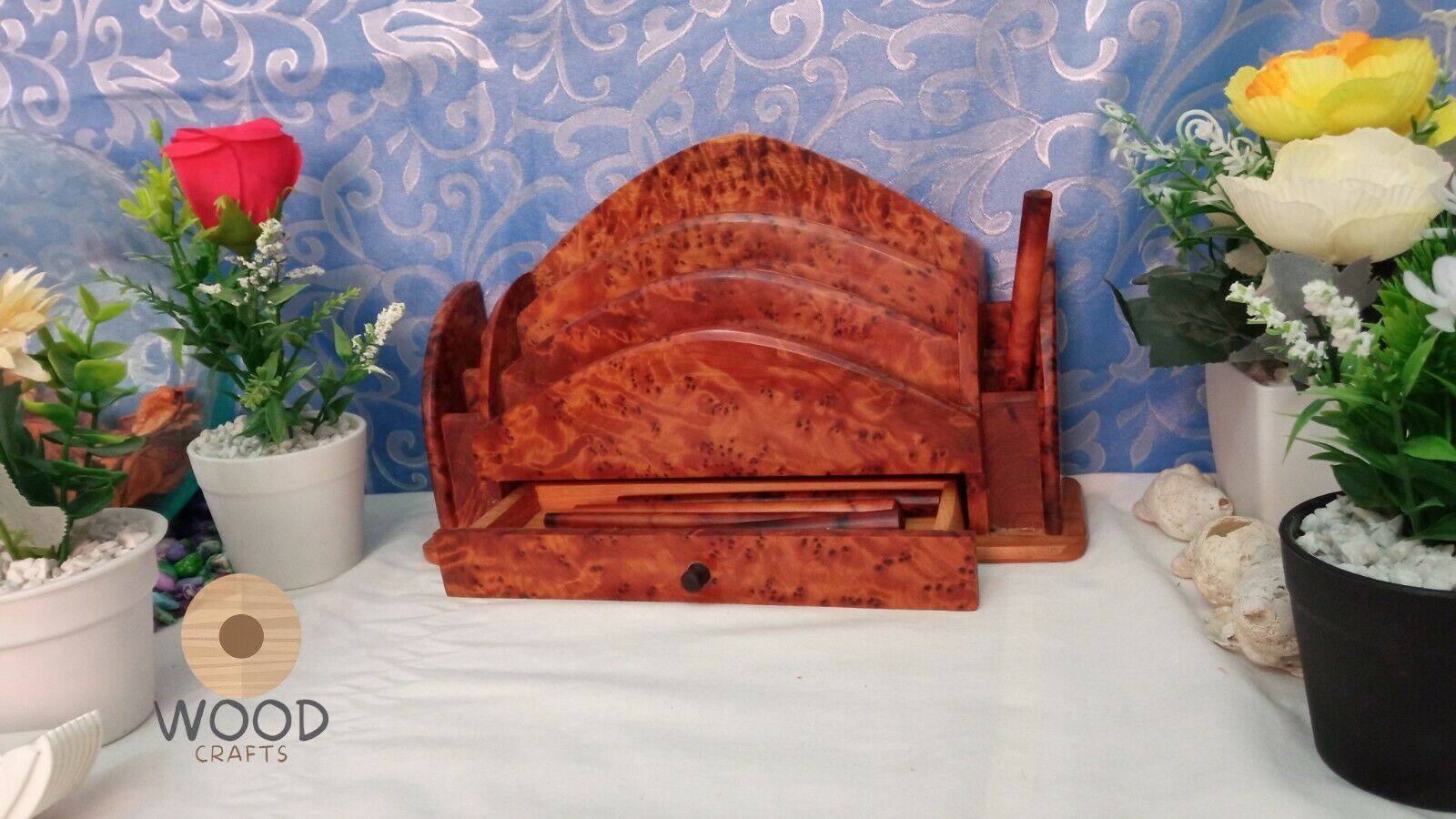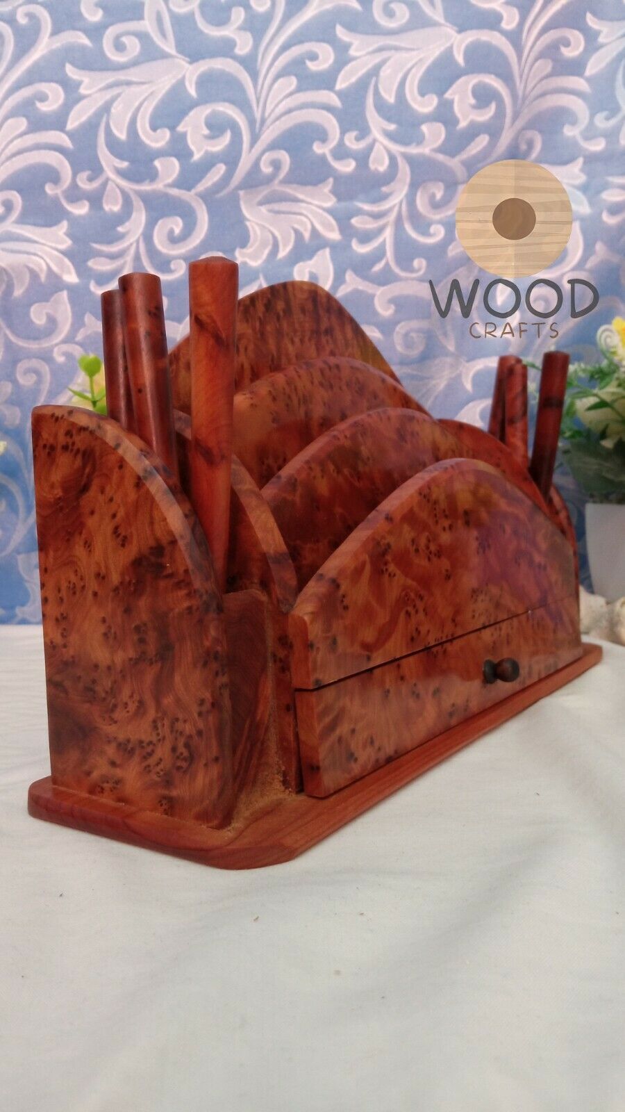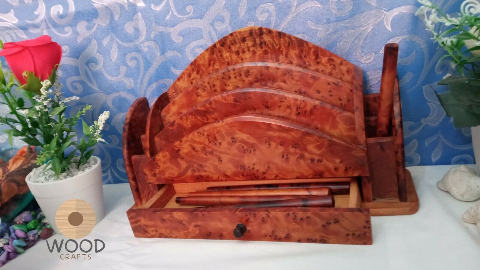 Amazing Wooden Thuya Set Wood art Desk Organizer Letter Rack,Hand Carved Letter Holder ,Gift