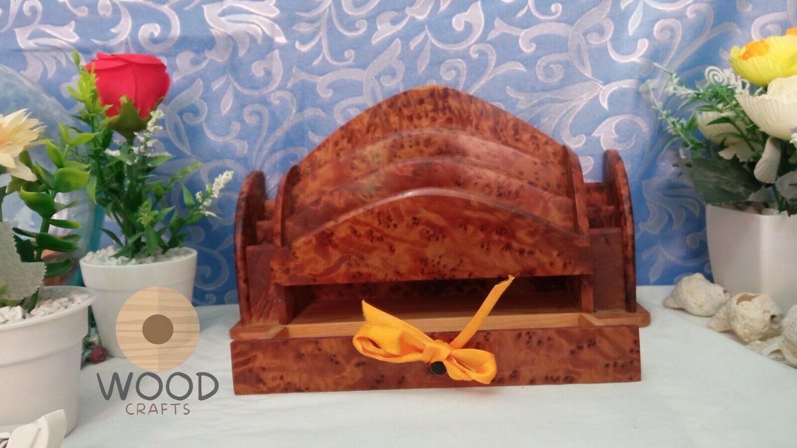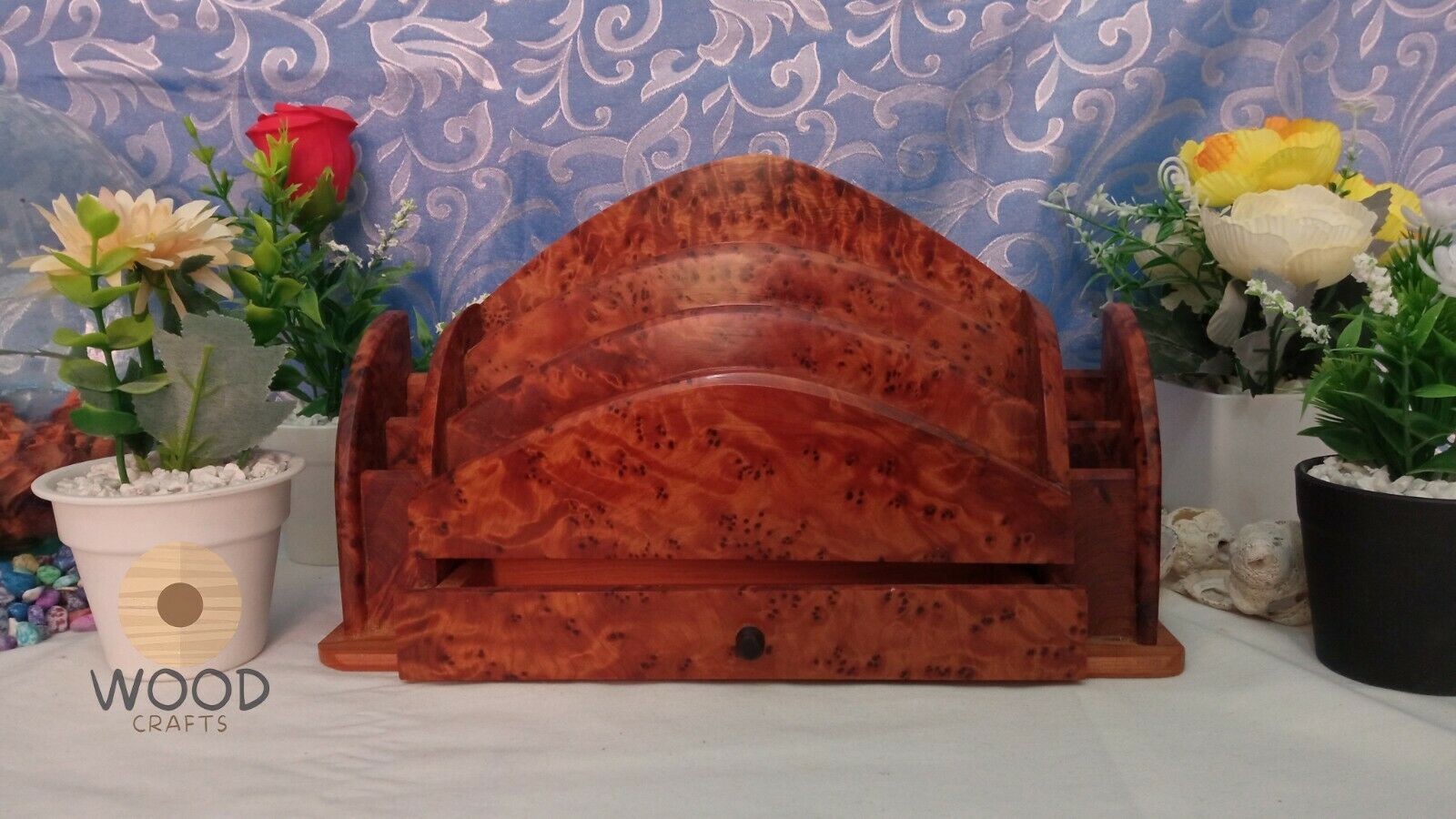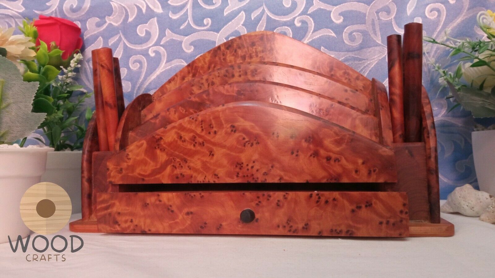 Amazing Wooden Thuya Set Wood art Desk Organizer Letter Rack,Hand Carved Letter Holder ,Gift