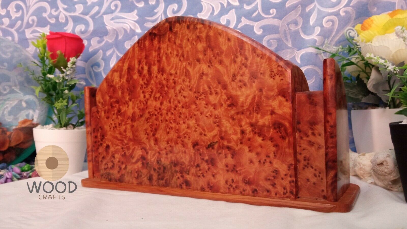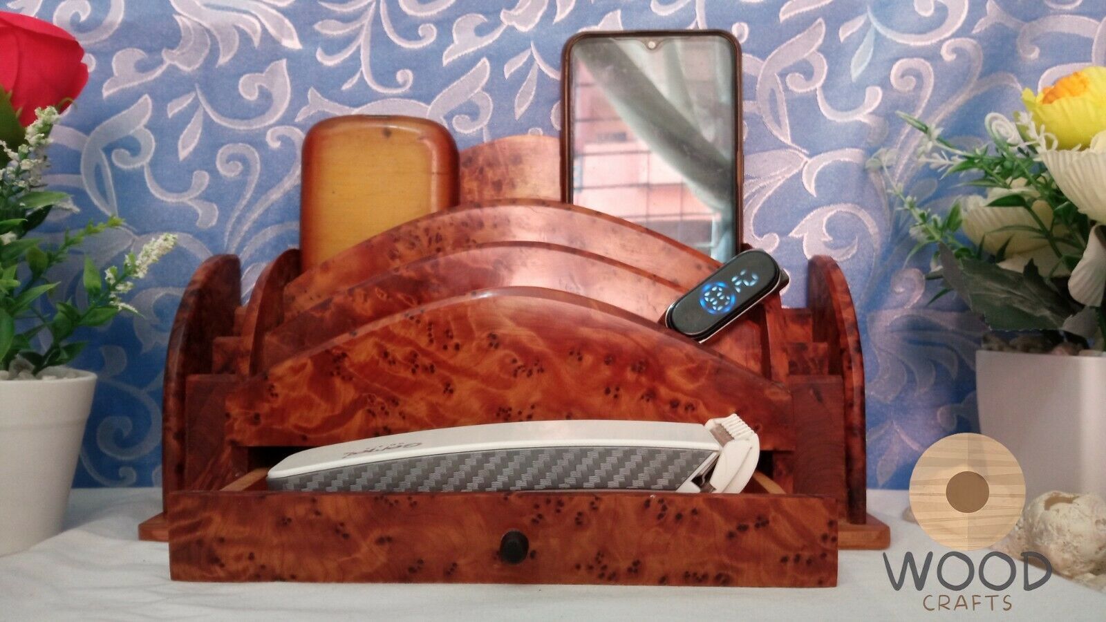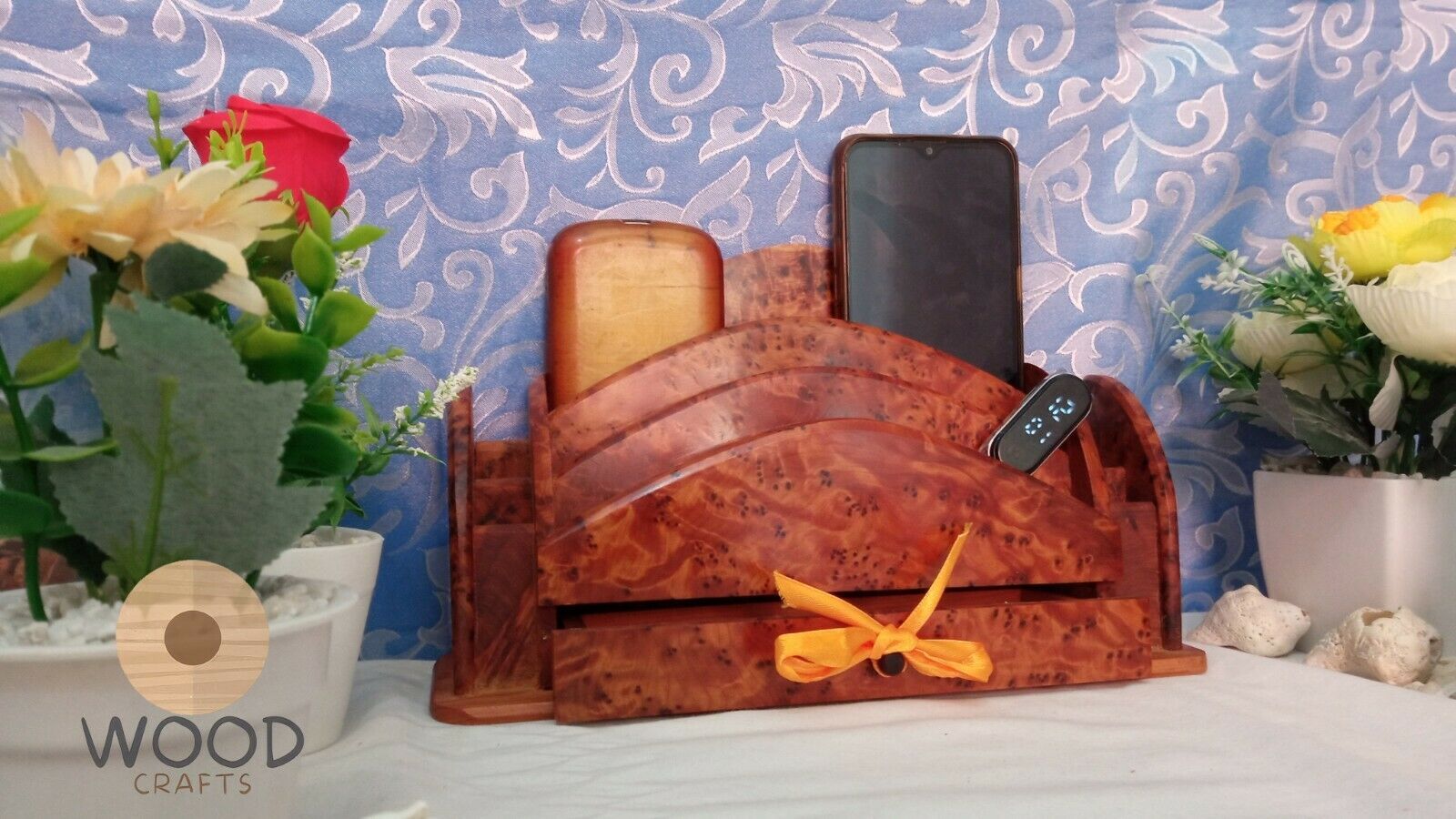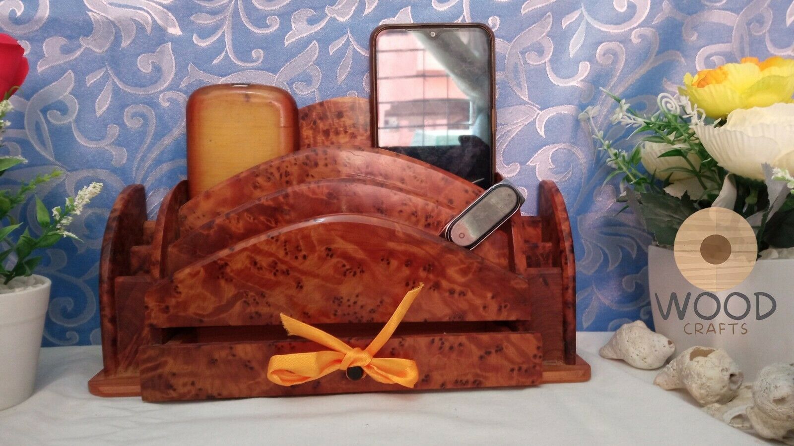 Beautiful wooden desk organizer made of Thuya Burls,This rare tree is a conifer from the cedar family and is exclusively native to Morocco.