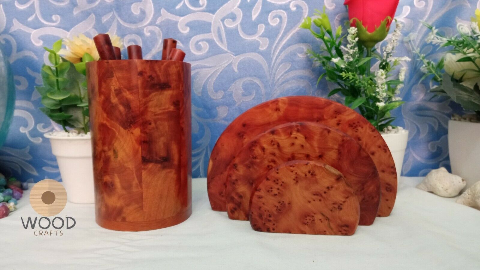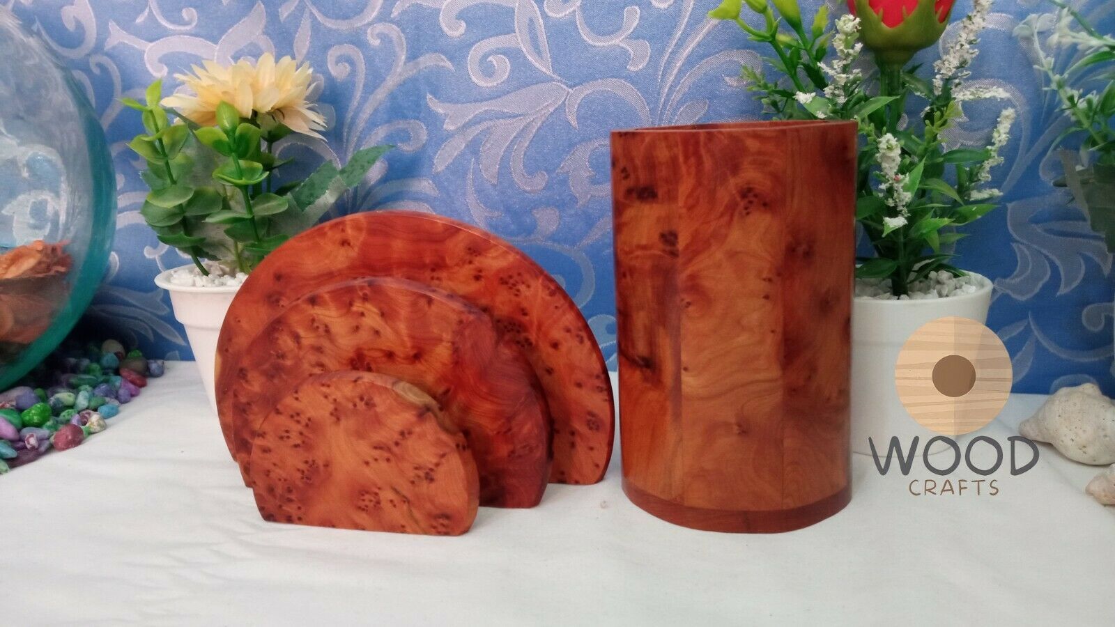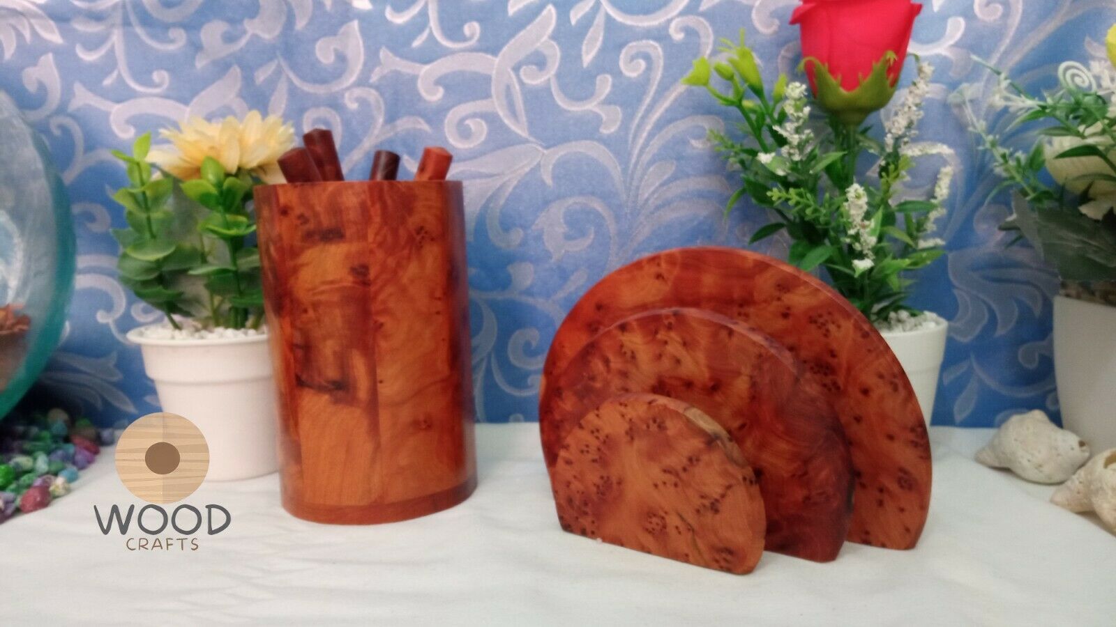 Wooden Desk Organizer + Pencil Cup Gift ,Thuya Wood Desk Set,Thuya Wood Letter