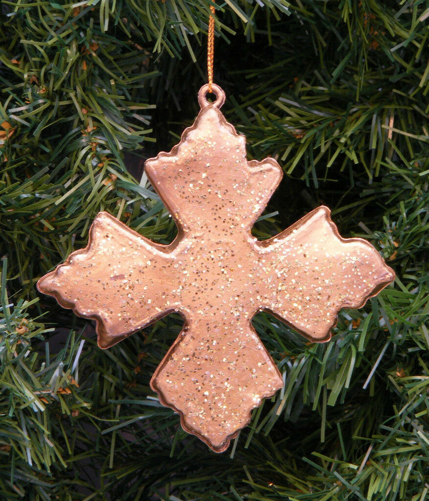 Bronson Imports Gold Glitter w/ Blue Jewel Victorian Cross Christmas Ornament !