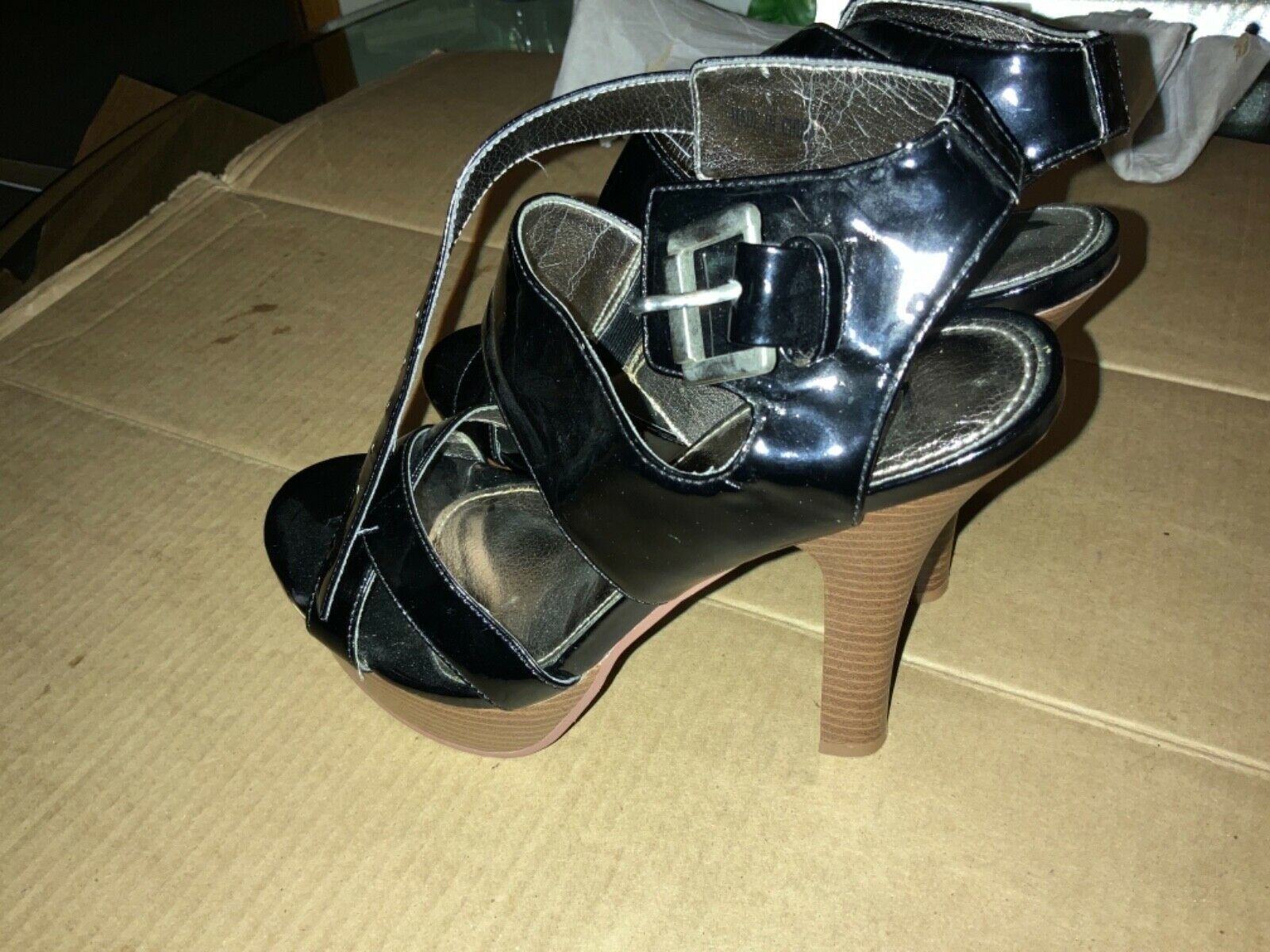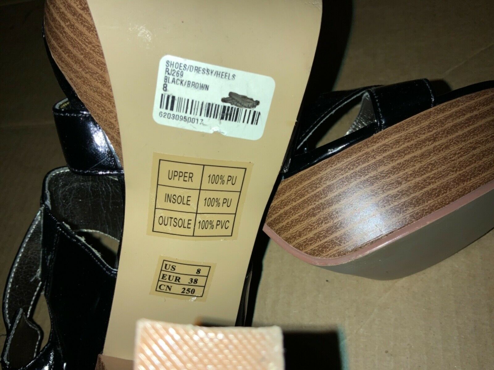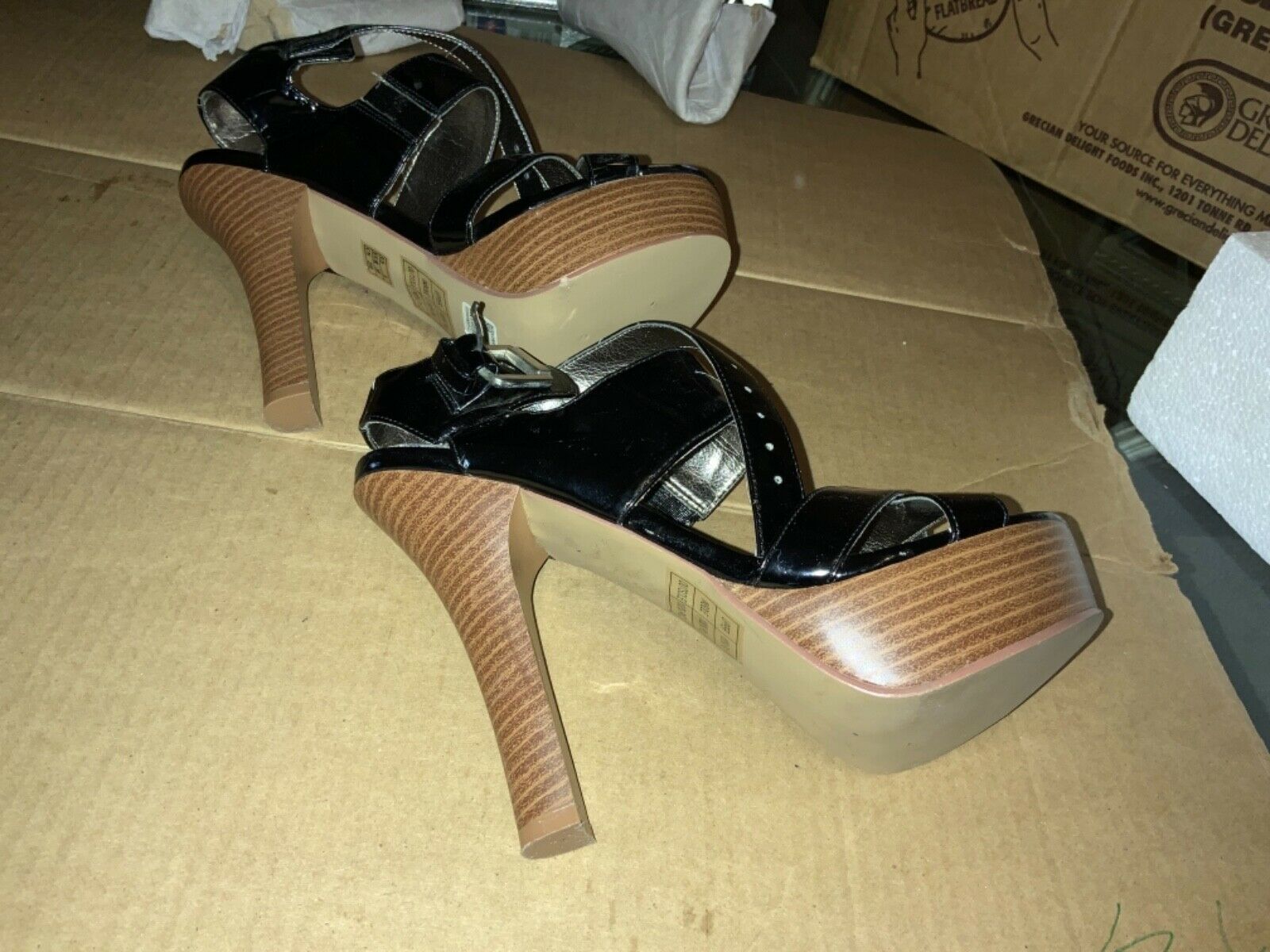 F24 Women Sexy High Heels Stiletto Platform Black Patent Sandals Clubwear Size 8
