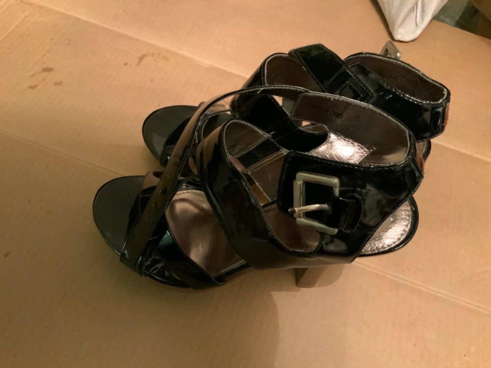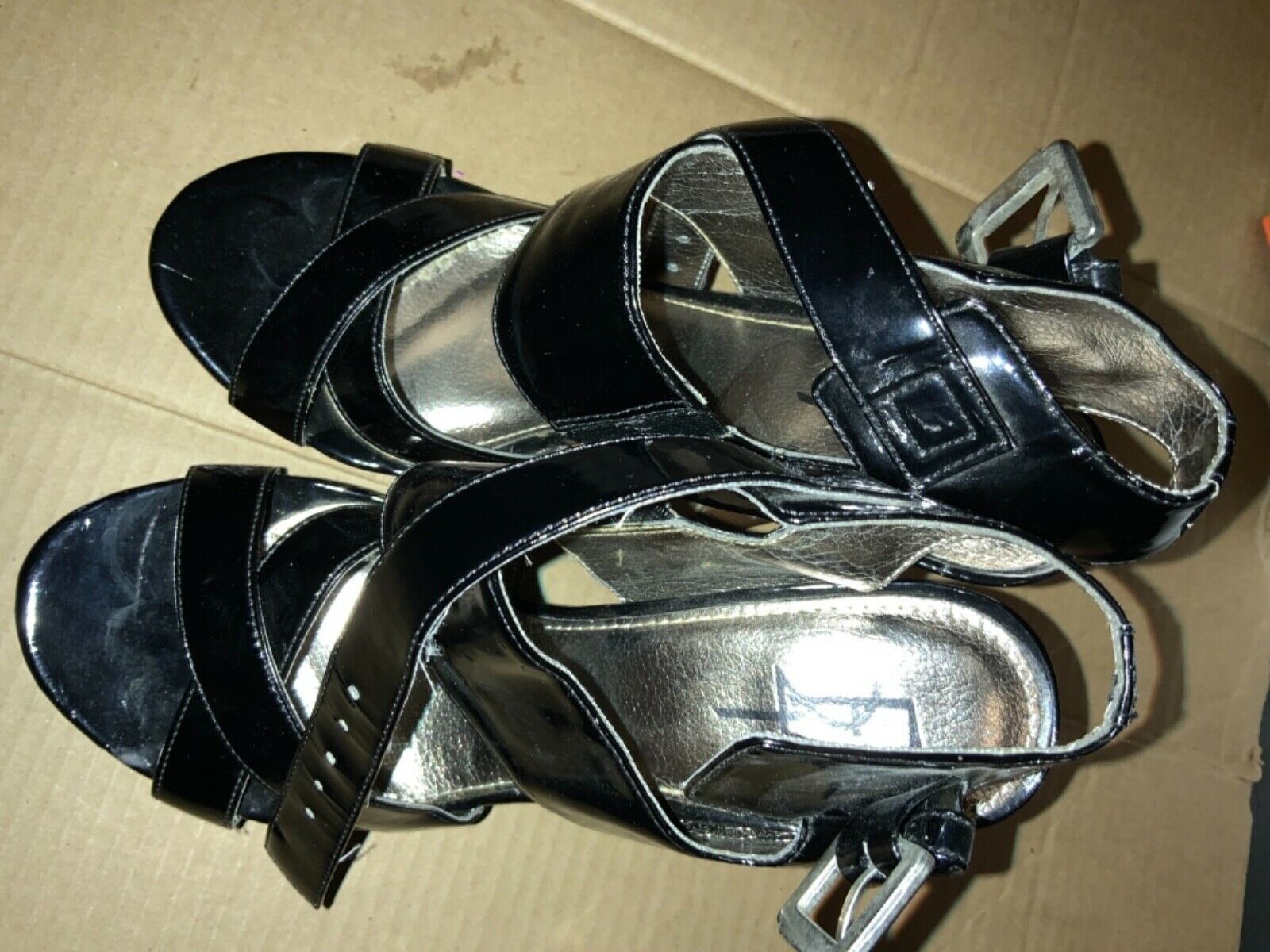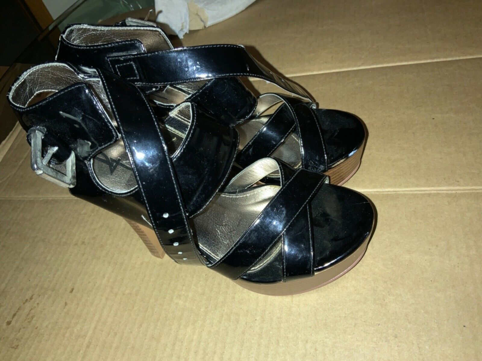 F24 Women Sexy High Heels Stiletto Platform Black Patent Sandals Clubwear Size 8