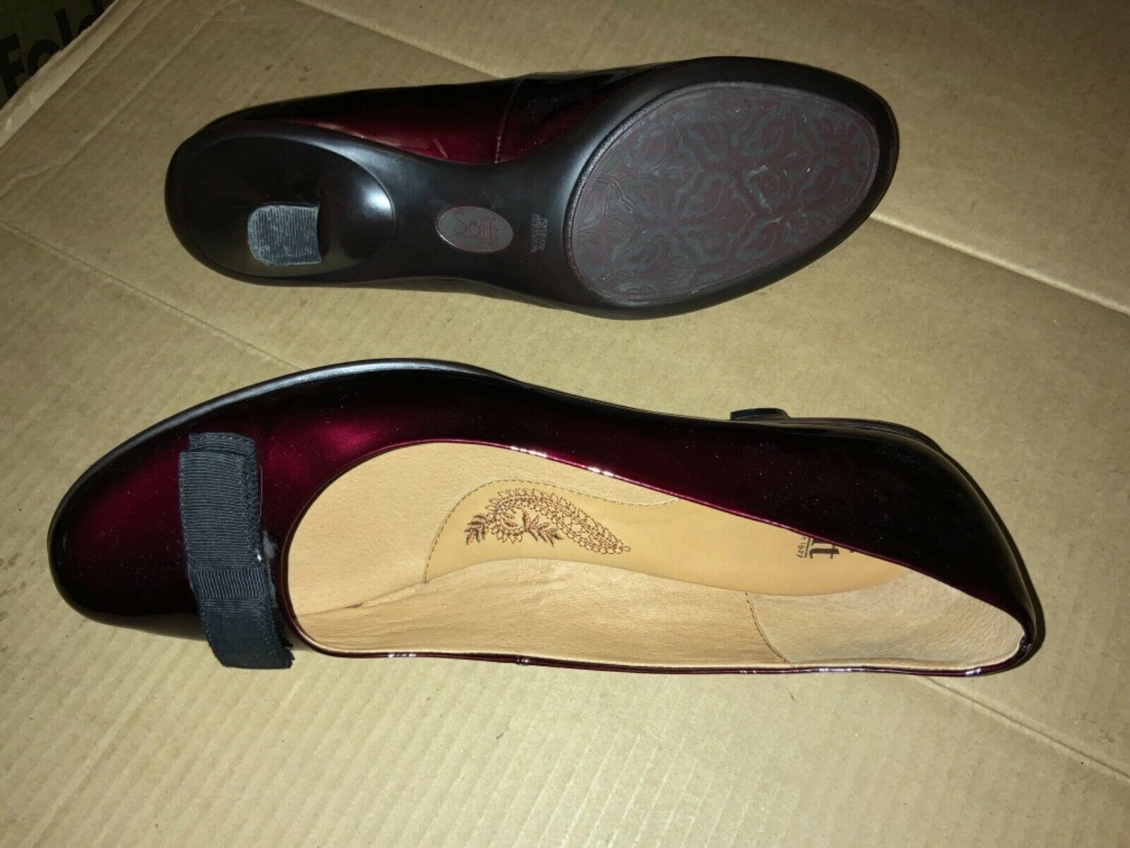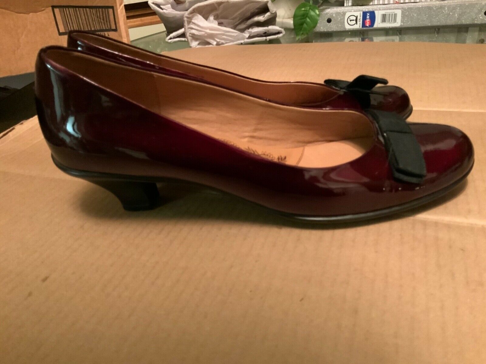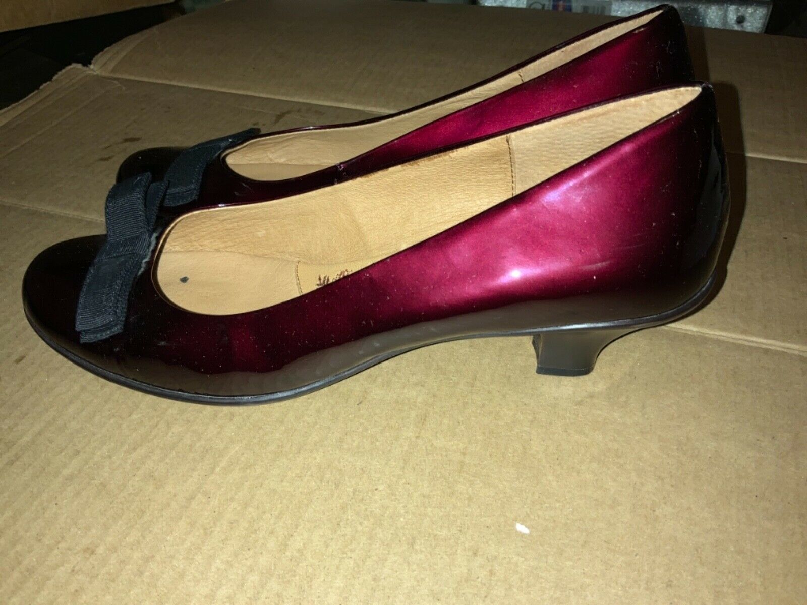 Sofft Low Heel Red Burgundy Patent Leather Slip On Bow Comfort Pump Women 11M