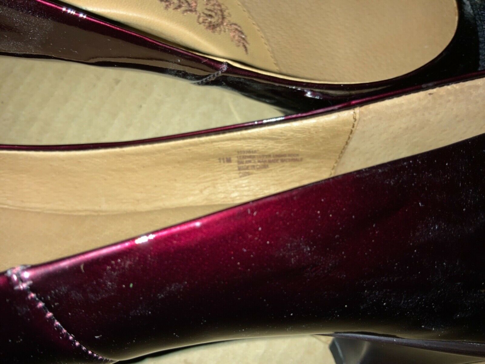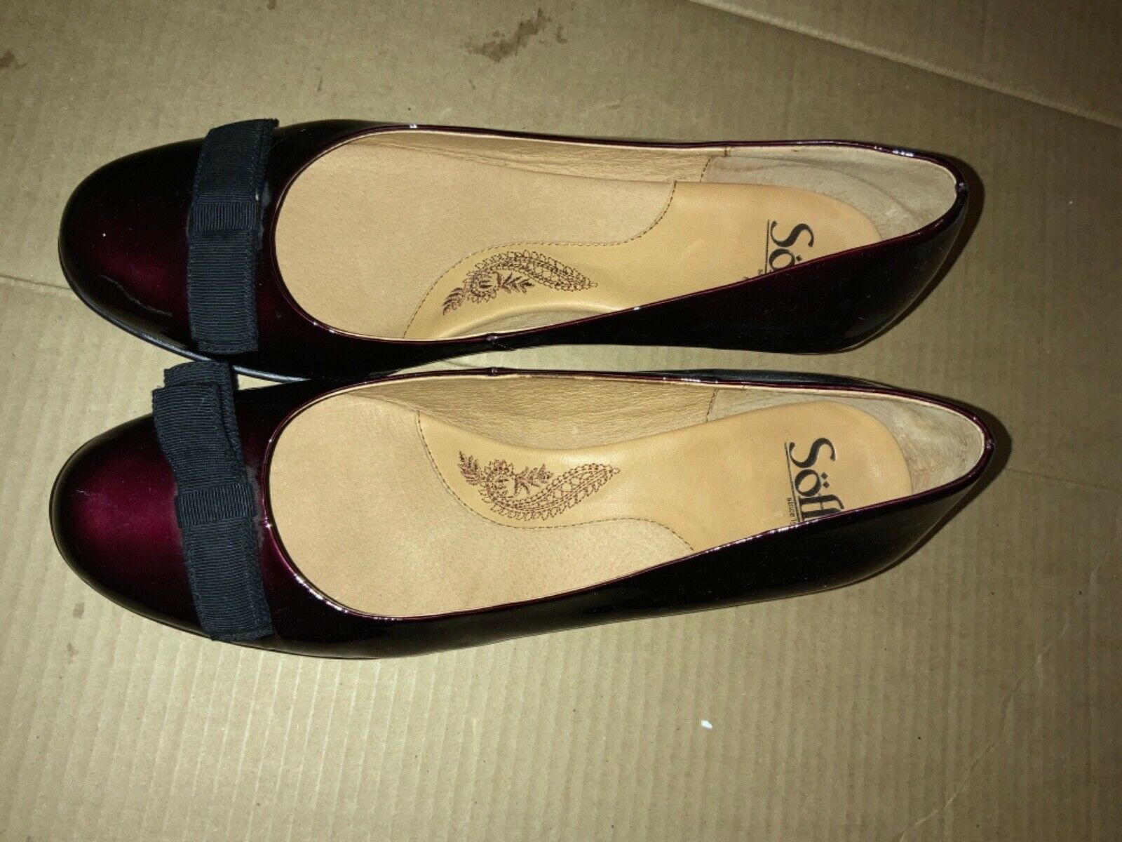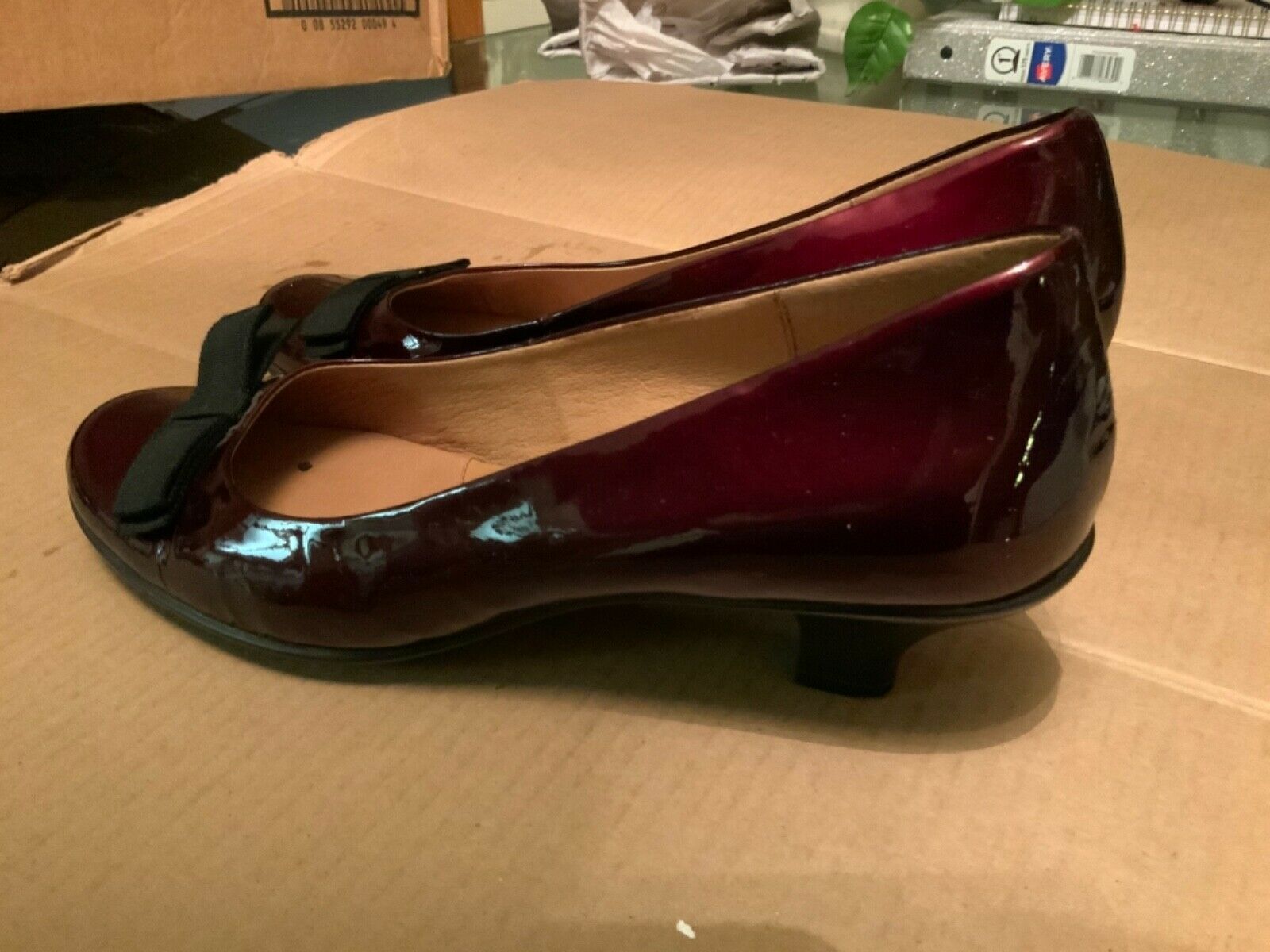 Sofft Low Heel Red Burgundy Patent Leather Slip On Bow Comfort Pump Women 11M