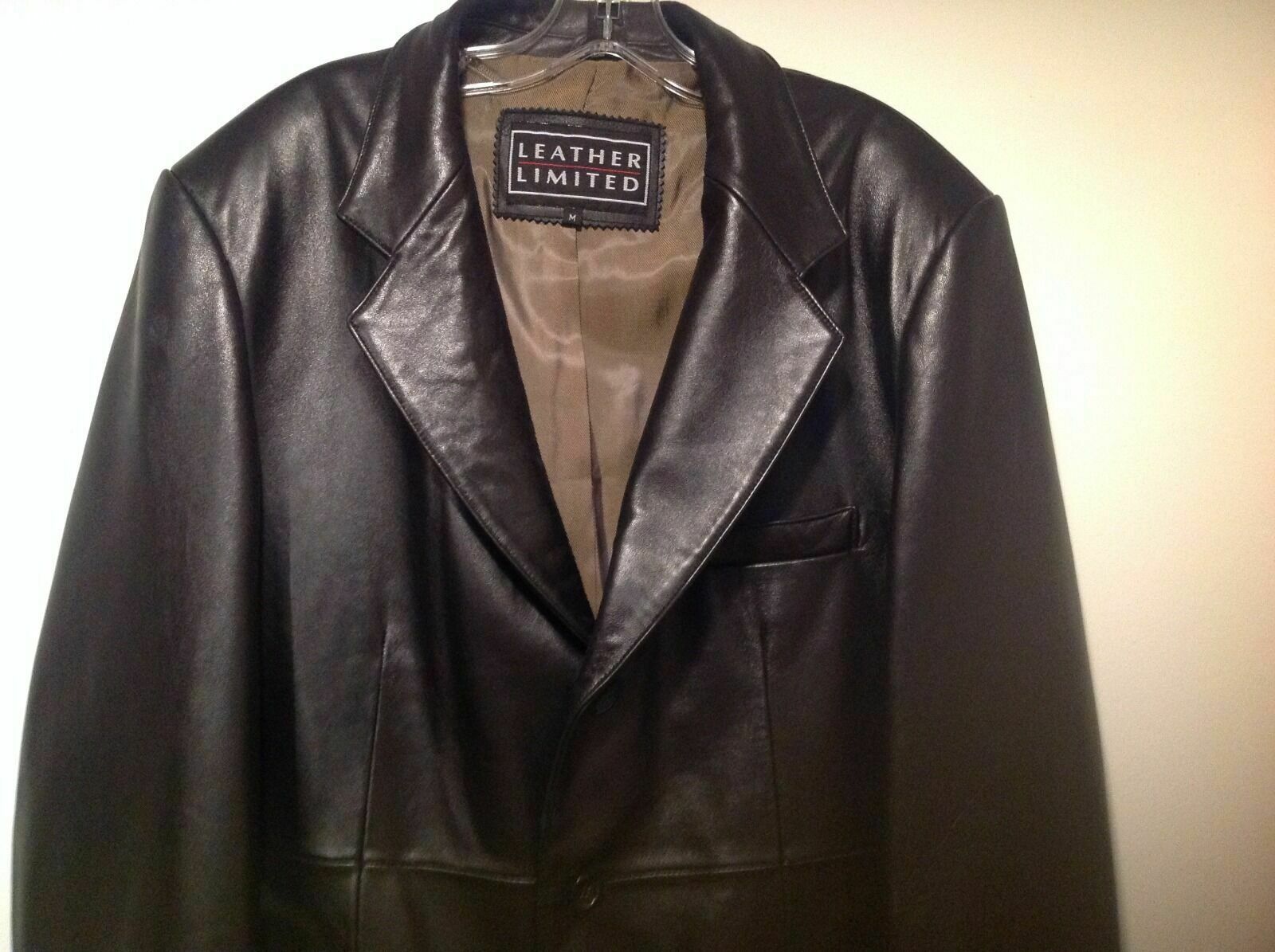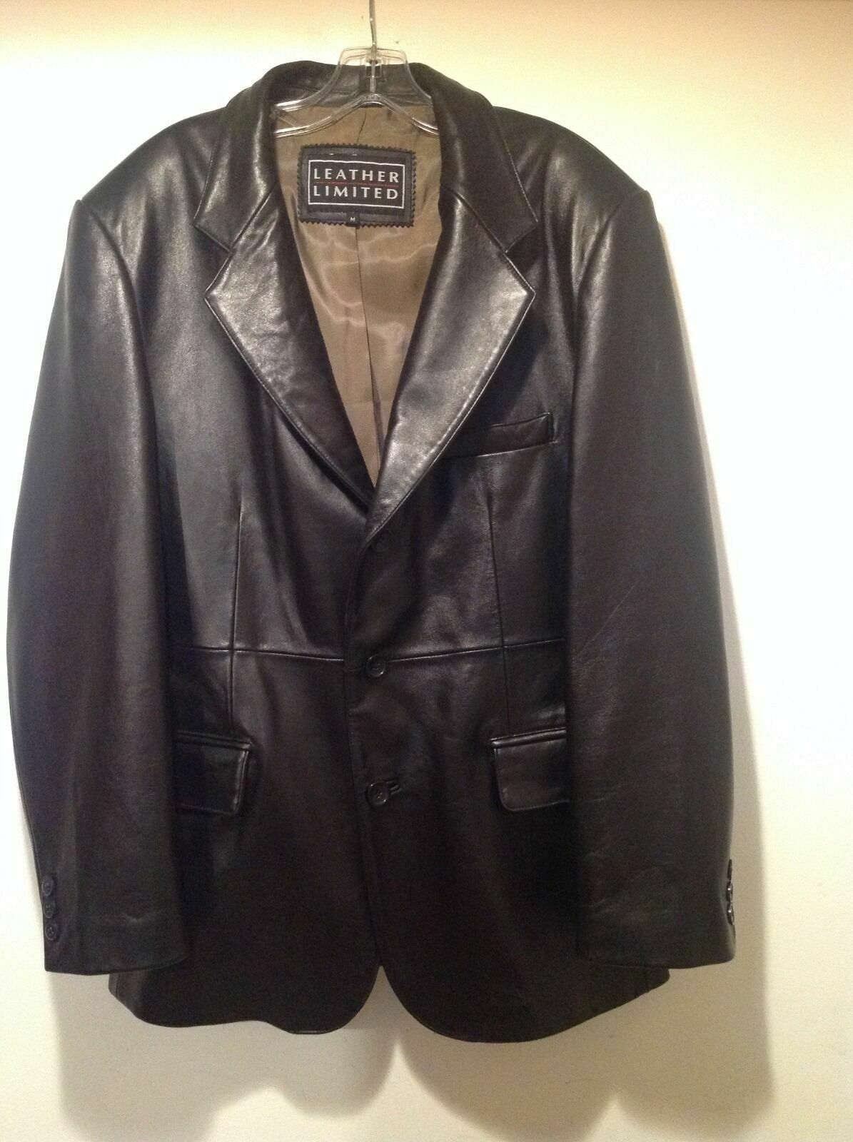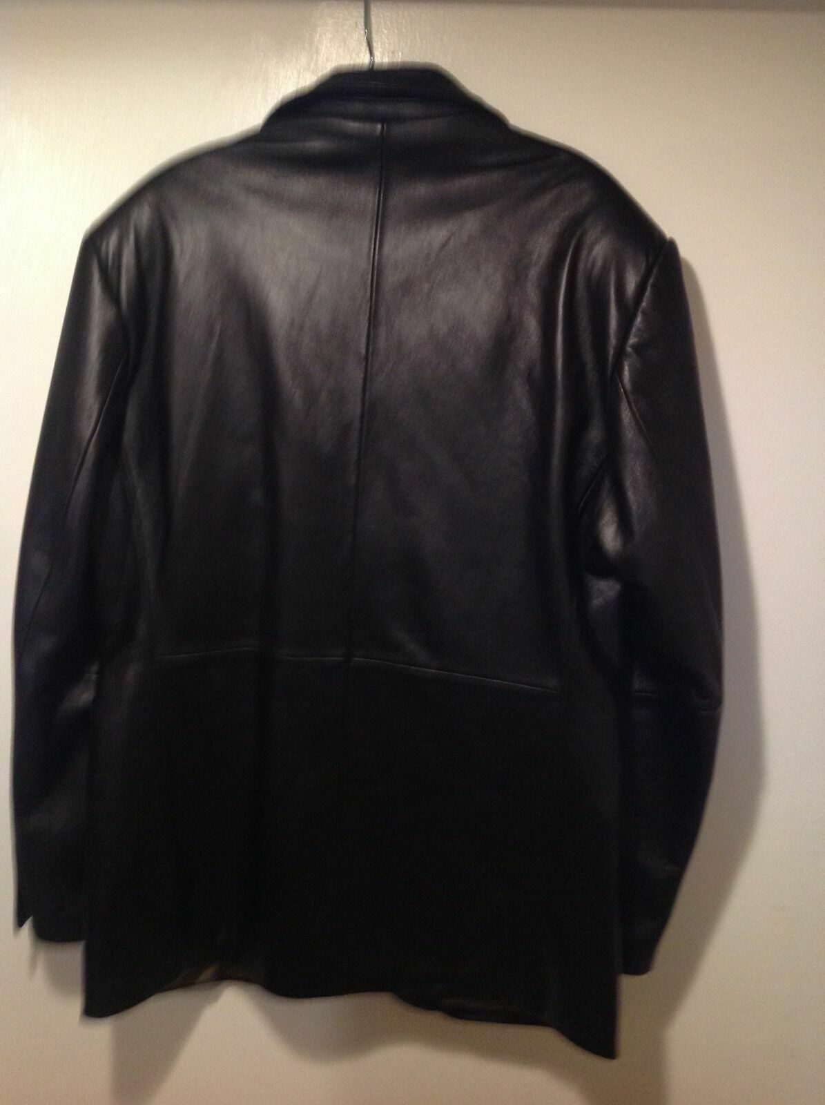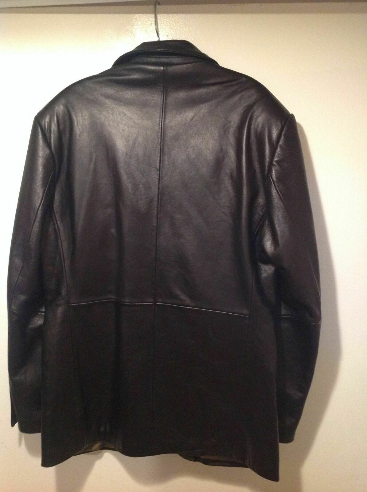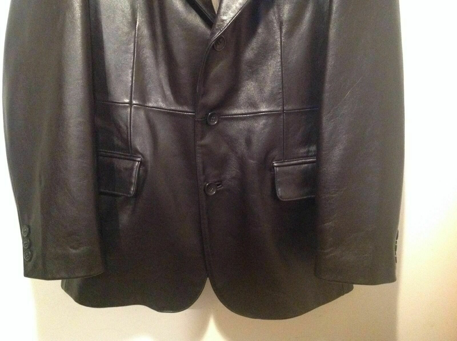 Men's Lambskin Black Leather 3 Button Blazer Jacket Coat Size Medium