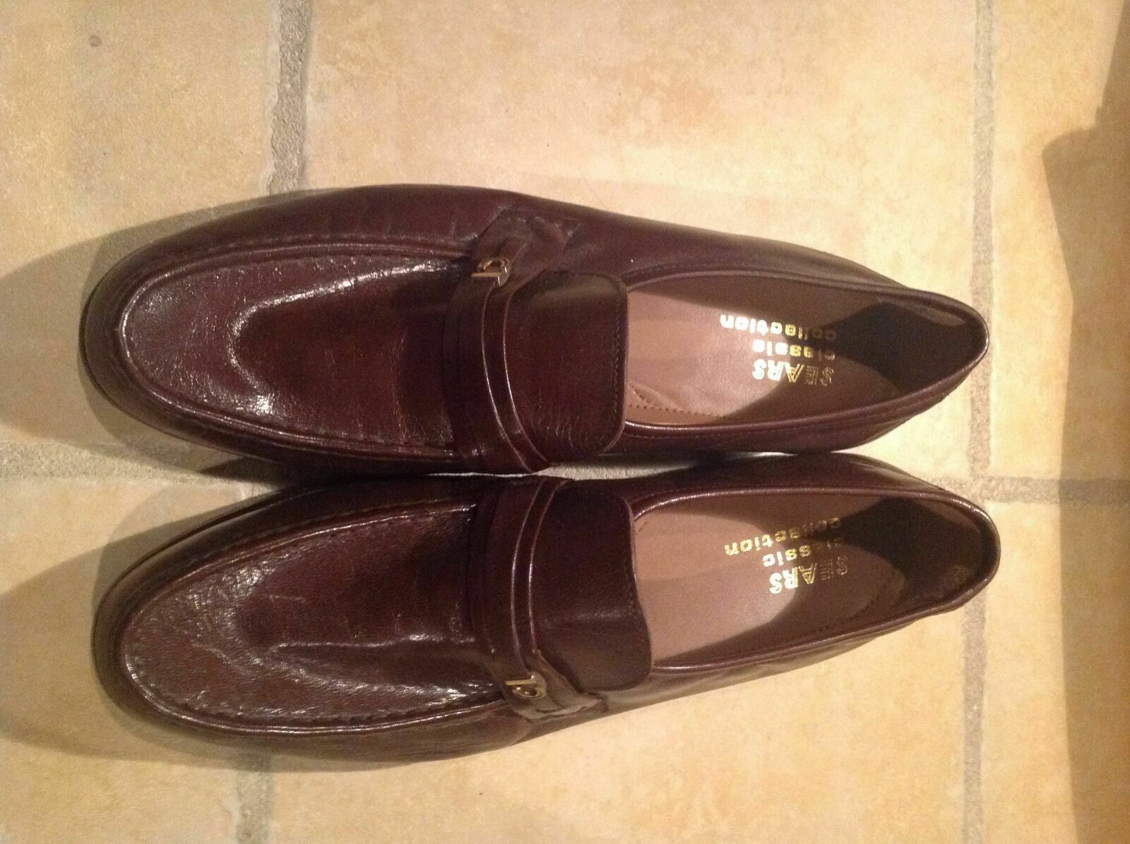 Brand New Vintage Mens Sears Burgundy Leather Loafers Size 11D