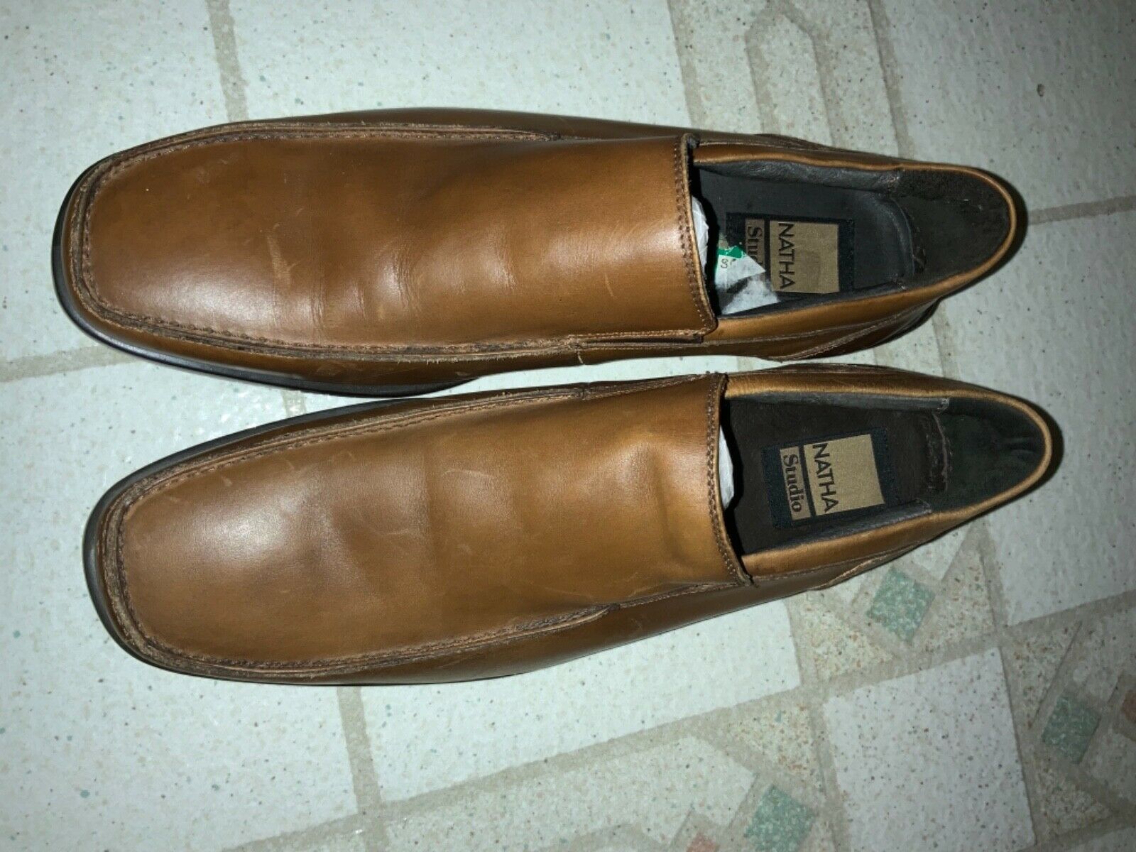 NATHA STUDIO BROWN LEATHER SLIP ONS LOAFERS MENS SIZE 10