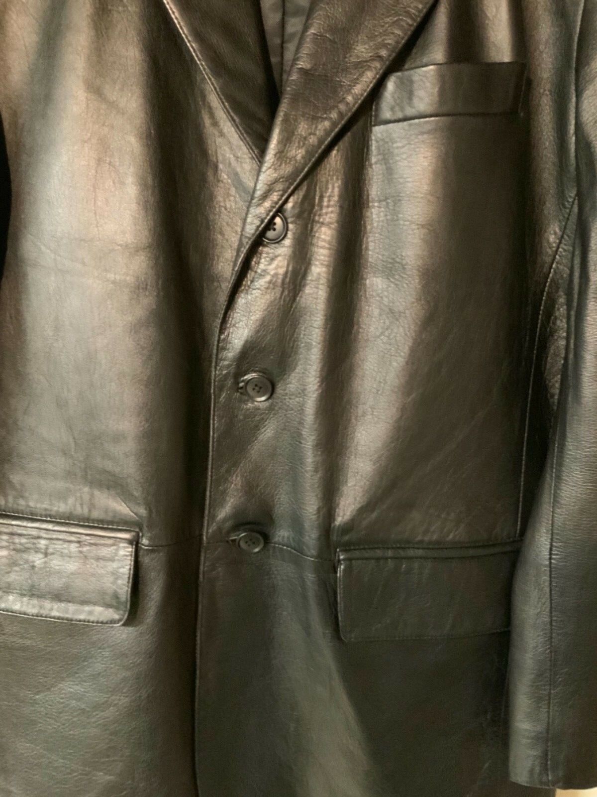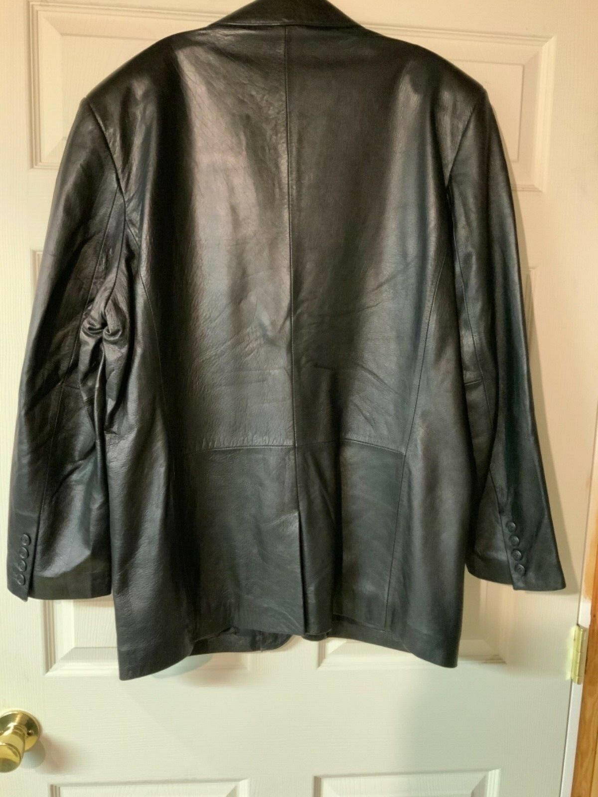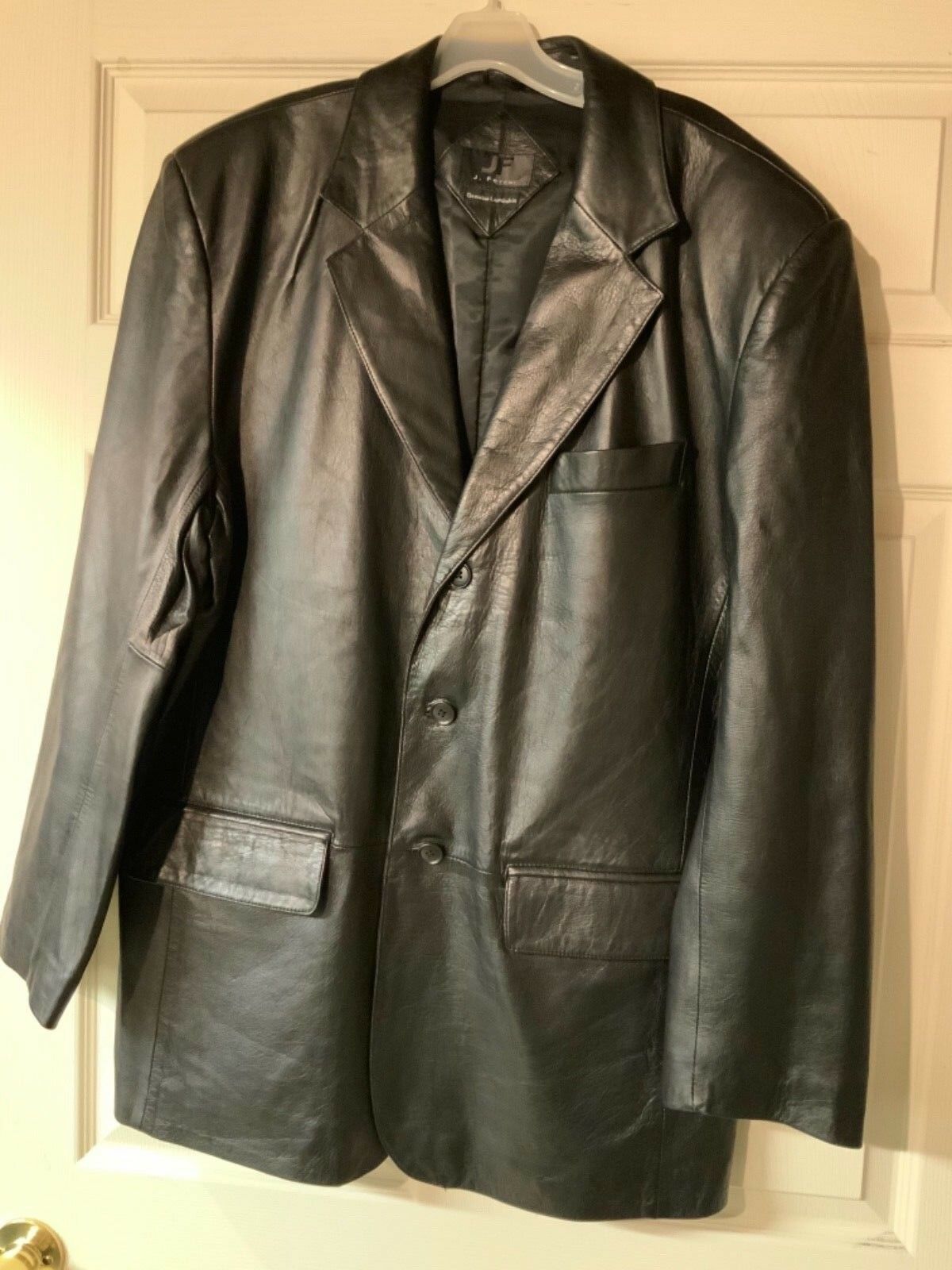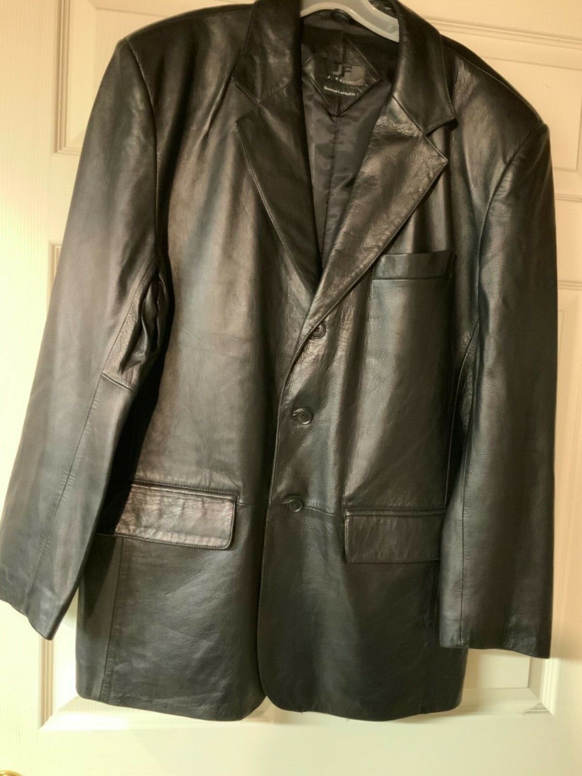 J Ferrar Men’s Black Genuine Soft Lambskin Leather Blazer Sport Coat Large