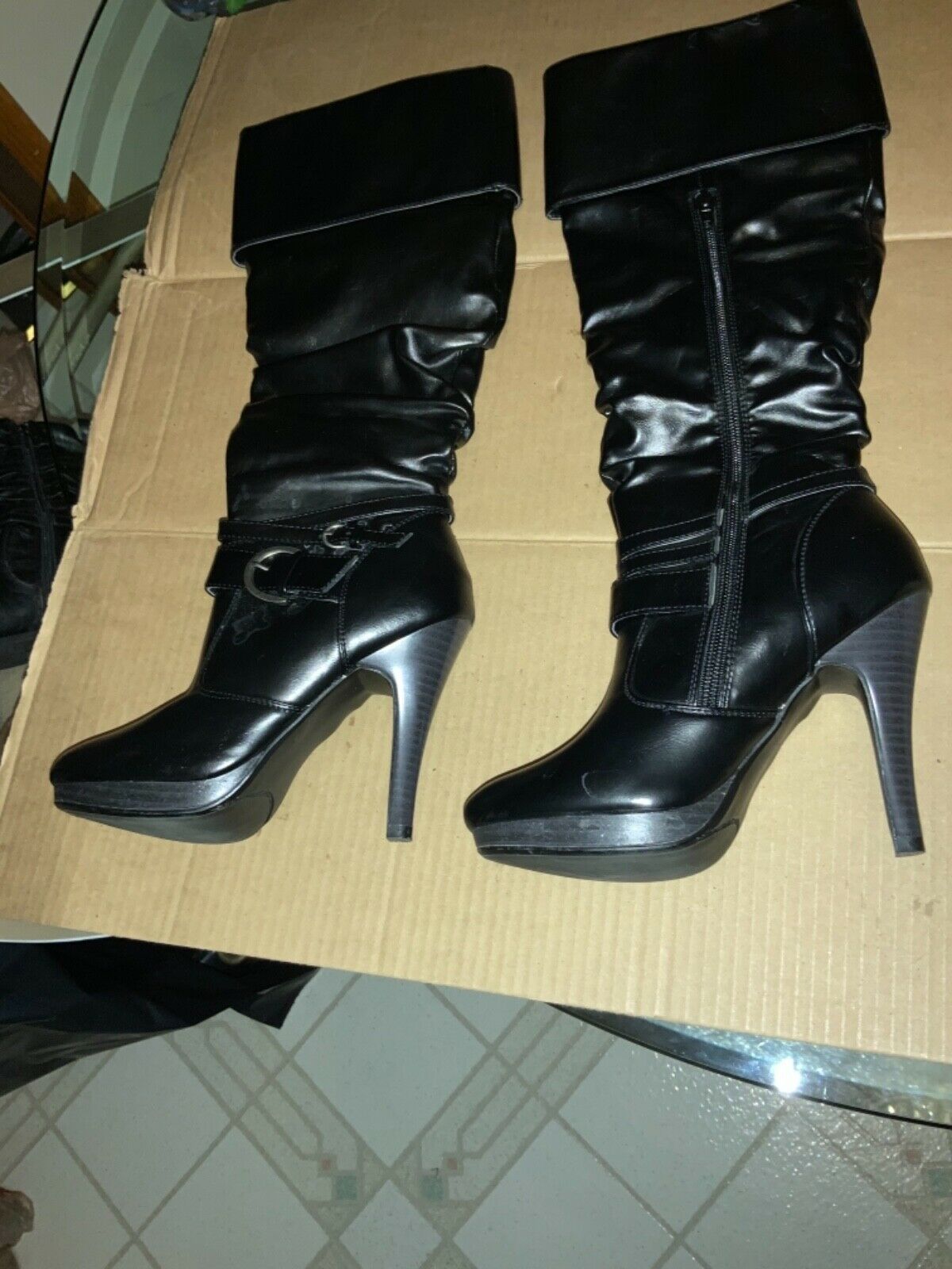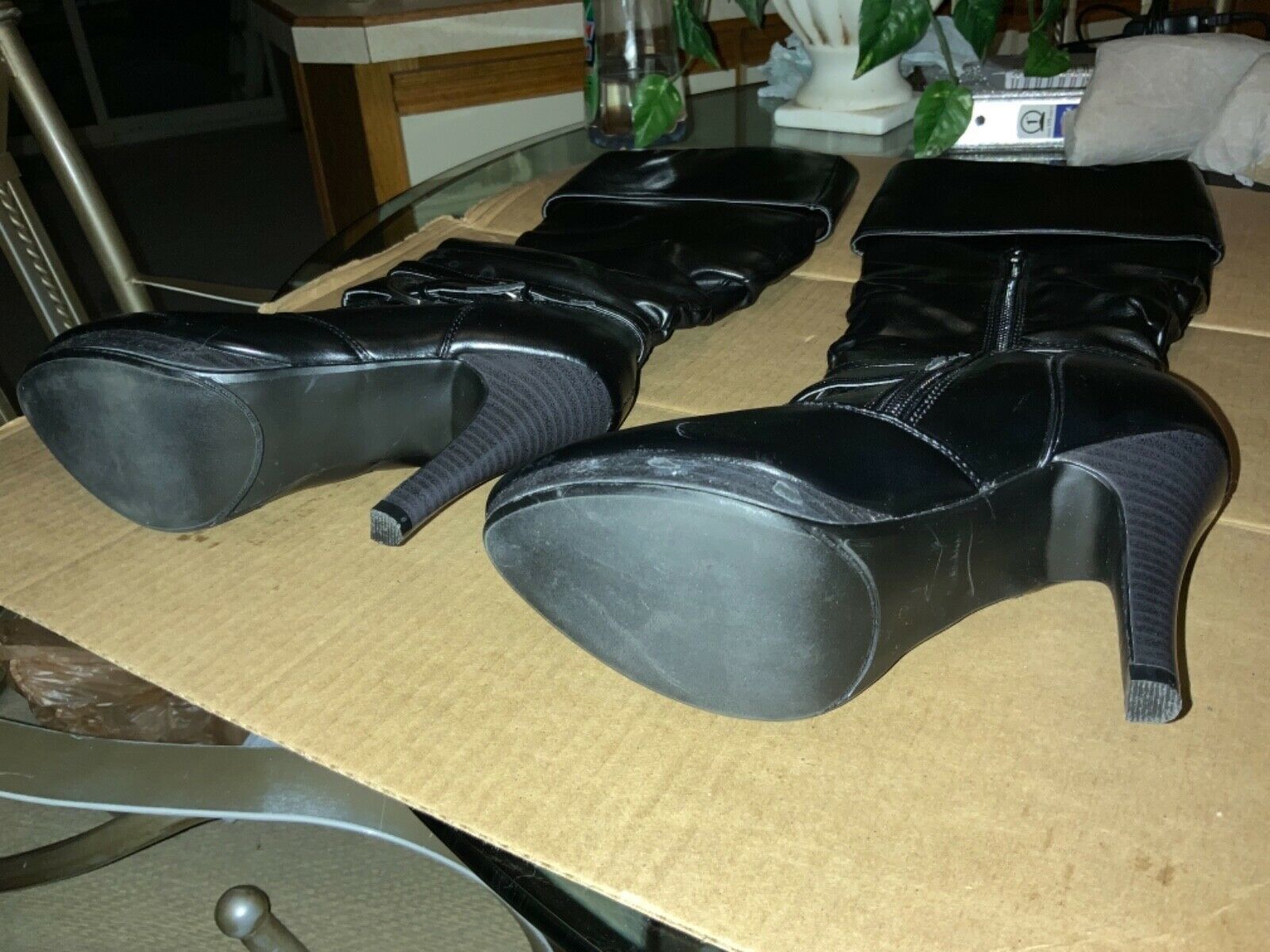 Apostrophe Black Tall High Heel Platform Boots With Folded Top Size 6