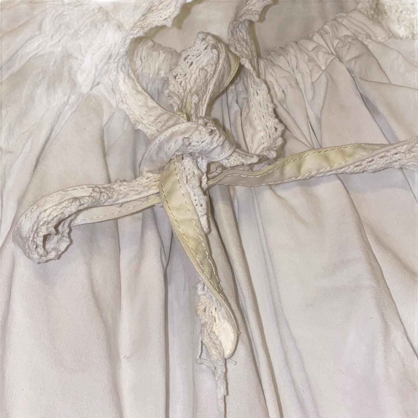 This dress is in 'play' condition due to staining on the tie strings on the back of the neck. Doesn't show in photos but it is there. Would be perfect for beach photos!