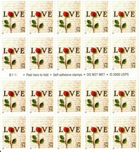 2001 34c Rose & Love Letter, SA, Booklet of 20 Scott 3497 Mint F/VF NH