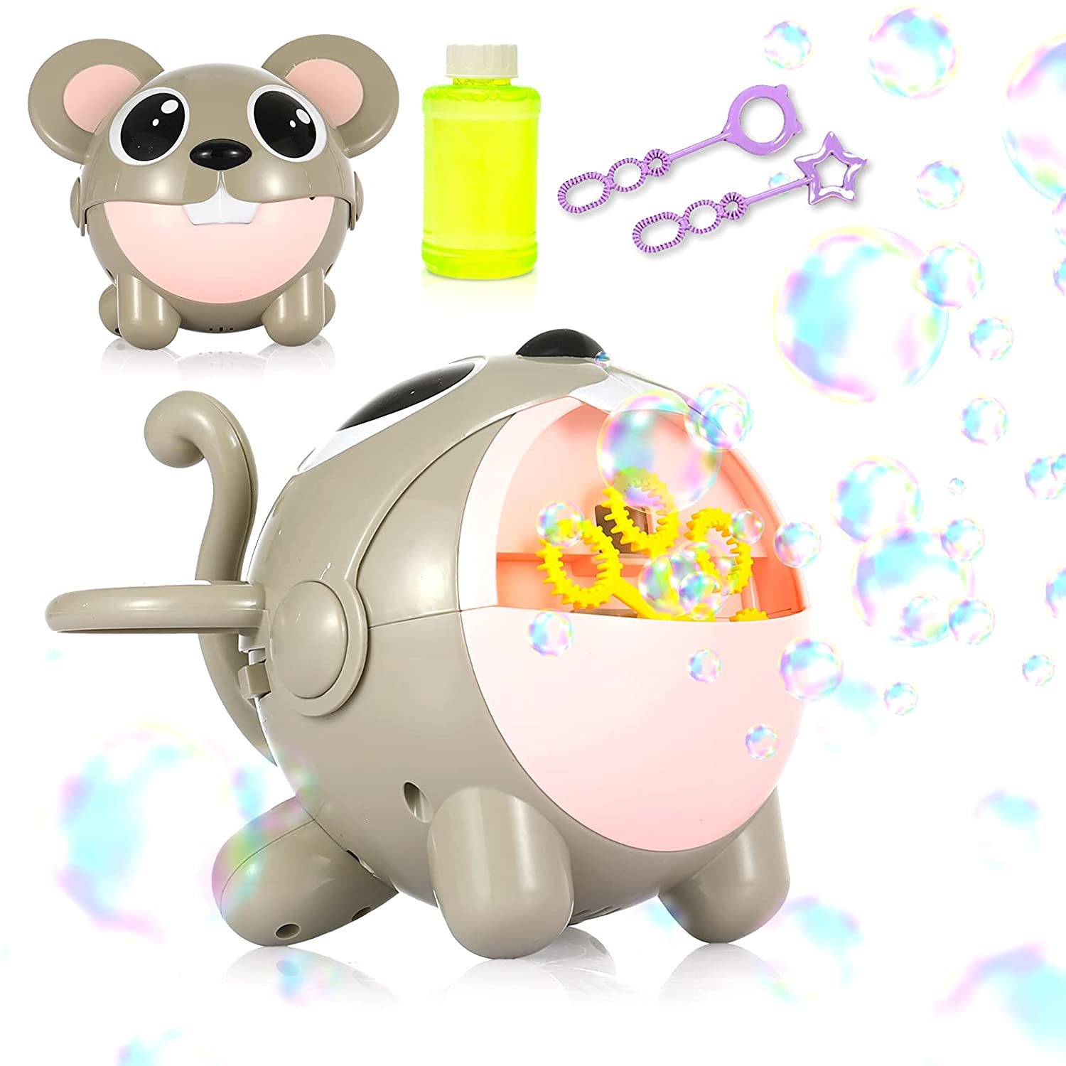 KEIYALOE Bubble Machine Automatic Mouse Bubble Maker with Bubble Solution.