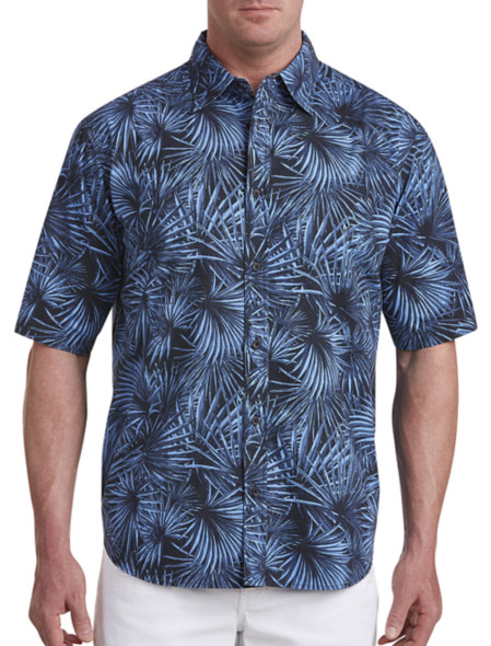 PX Clothing Fan Palm-Print Sport Shirt Size 1XL Colors White And Navy Blue