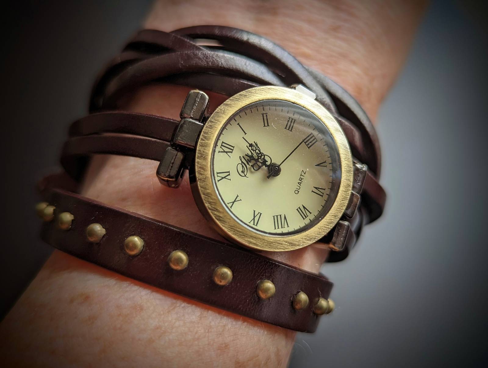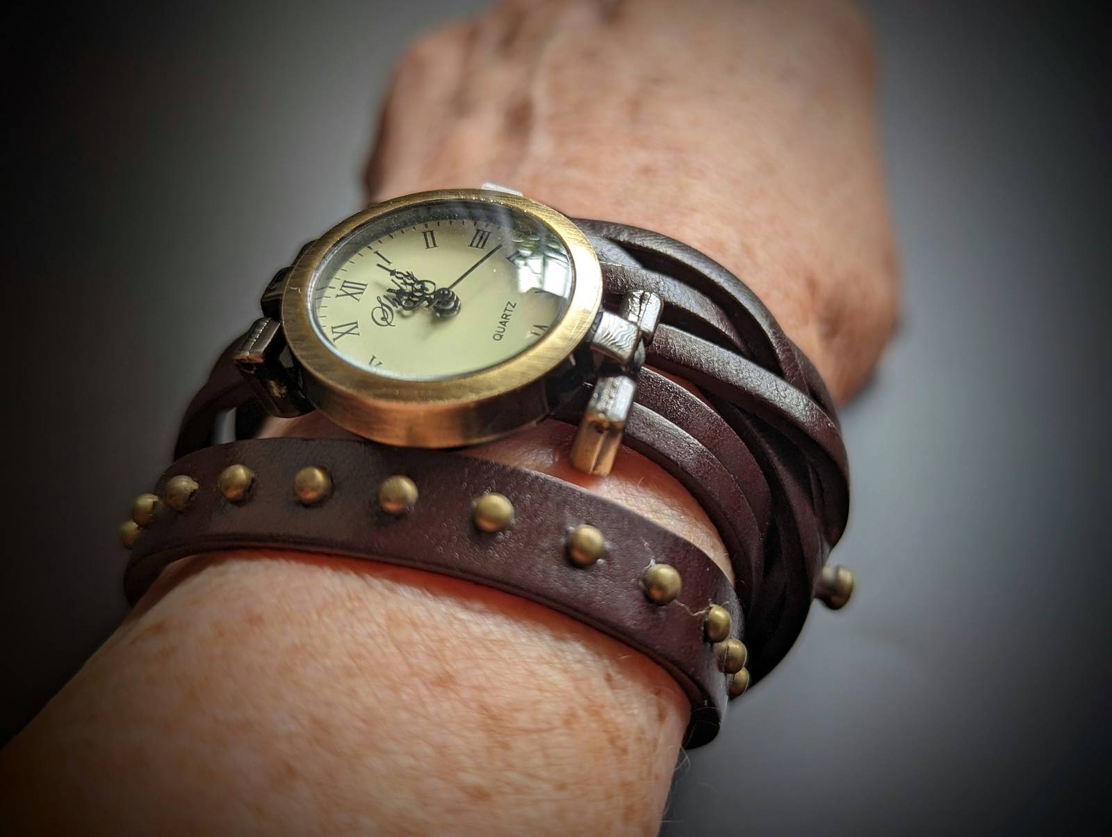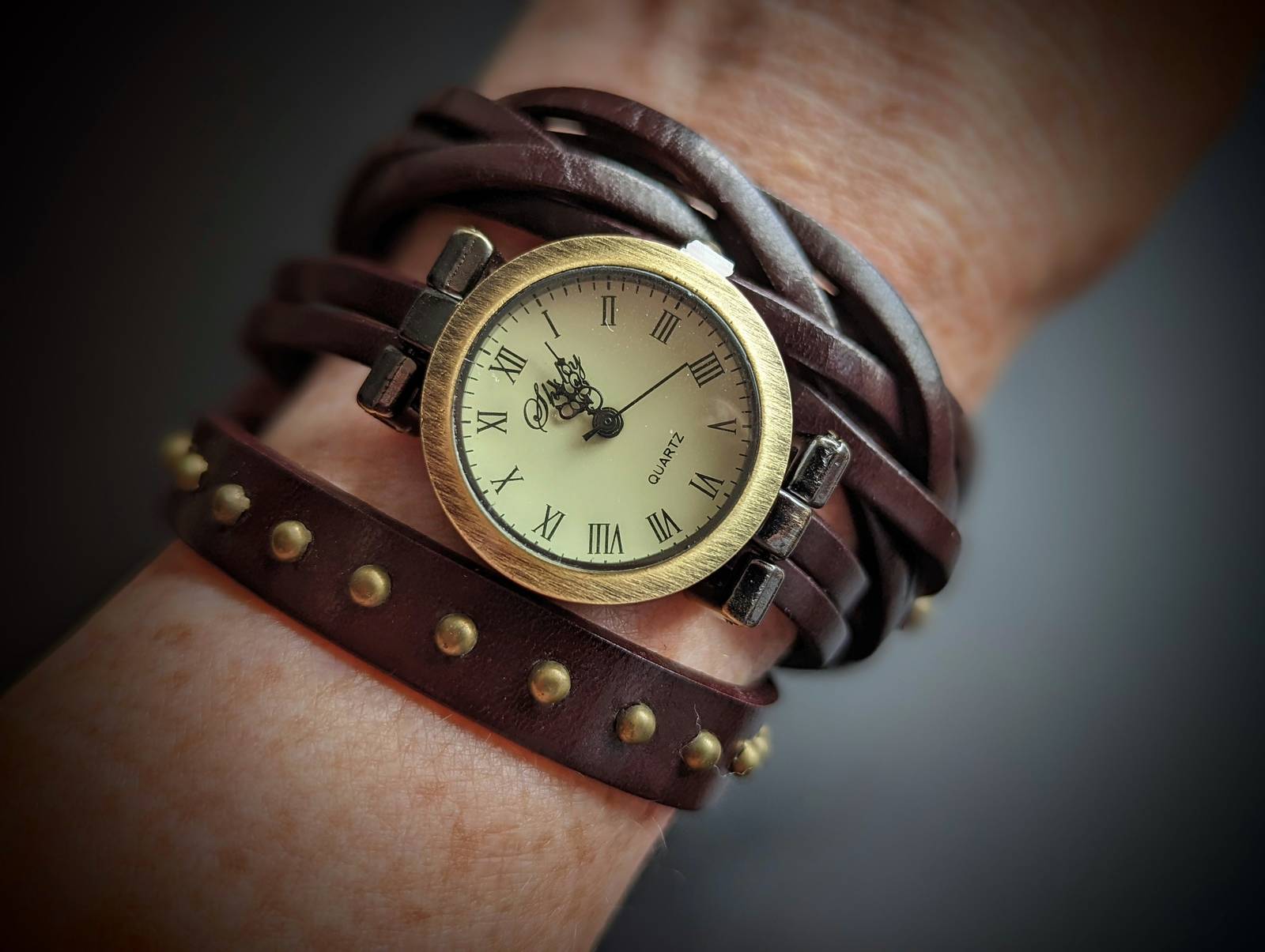 Steampunk watch in genuine leather second layer. Watch is battery operated.