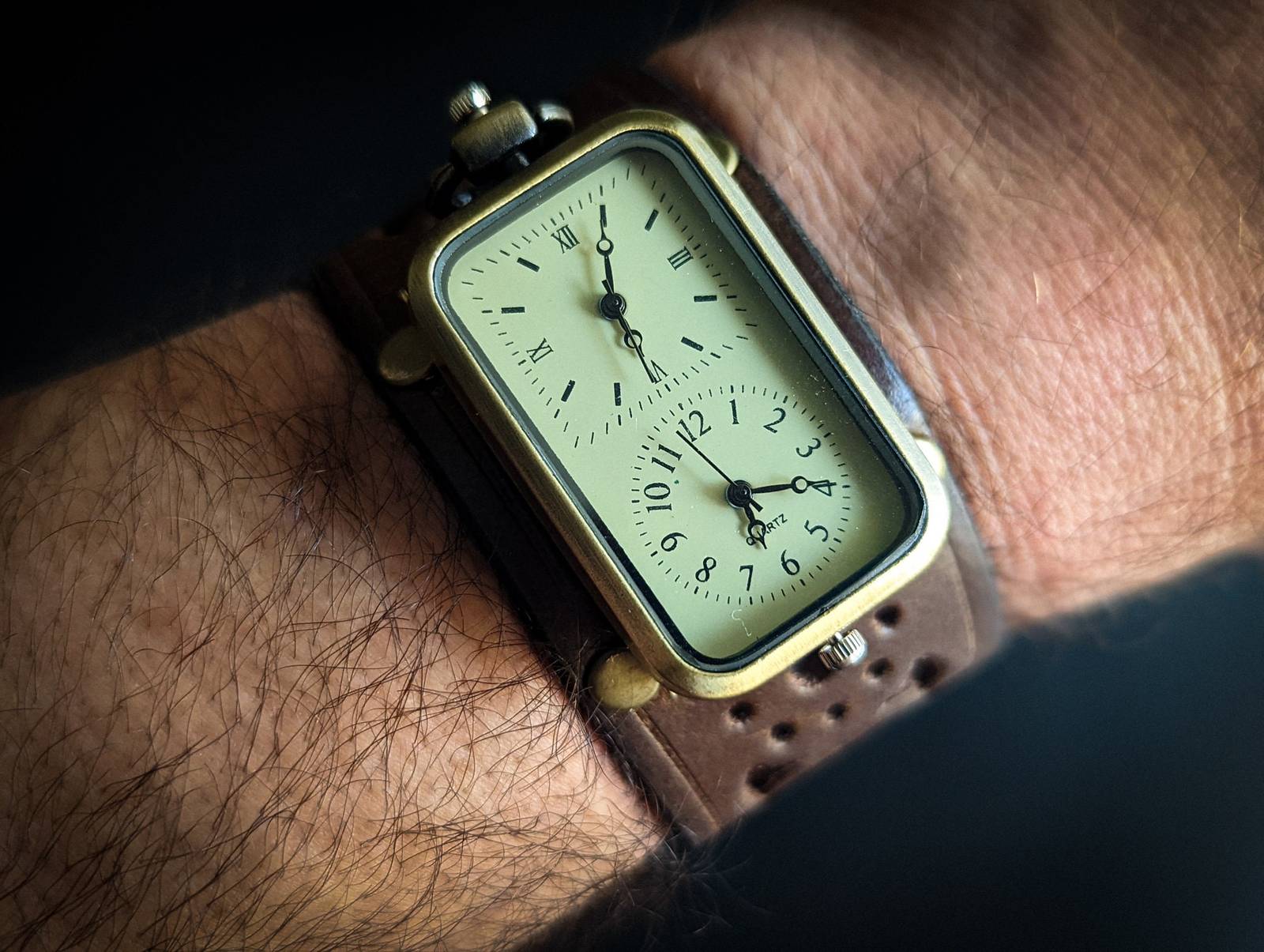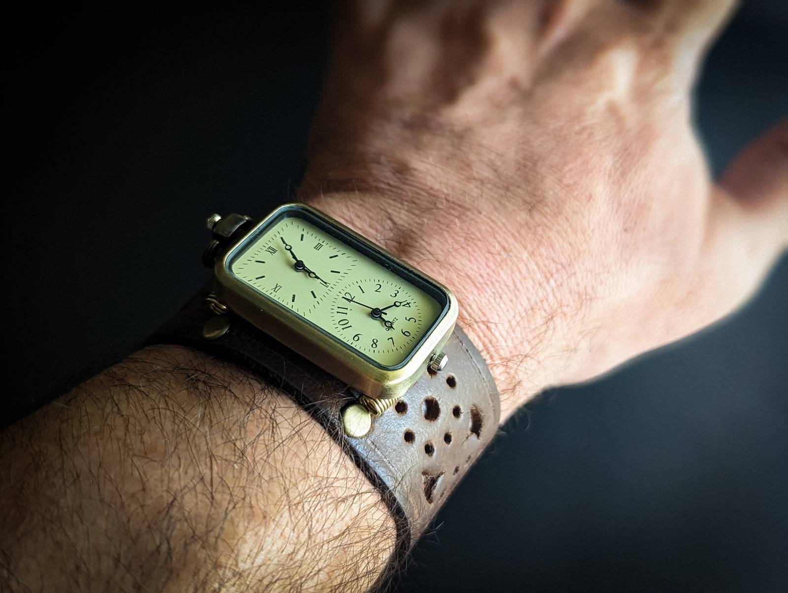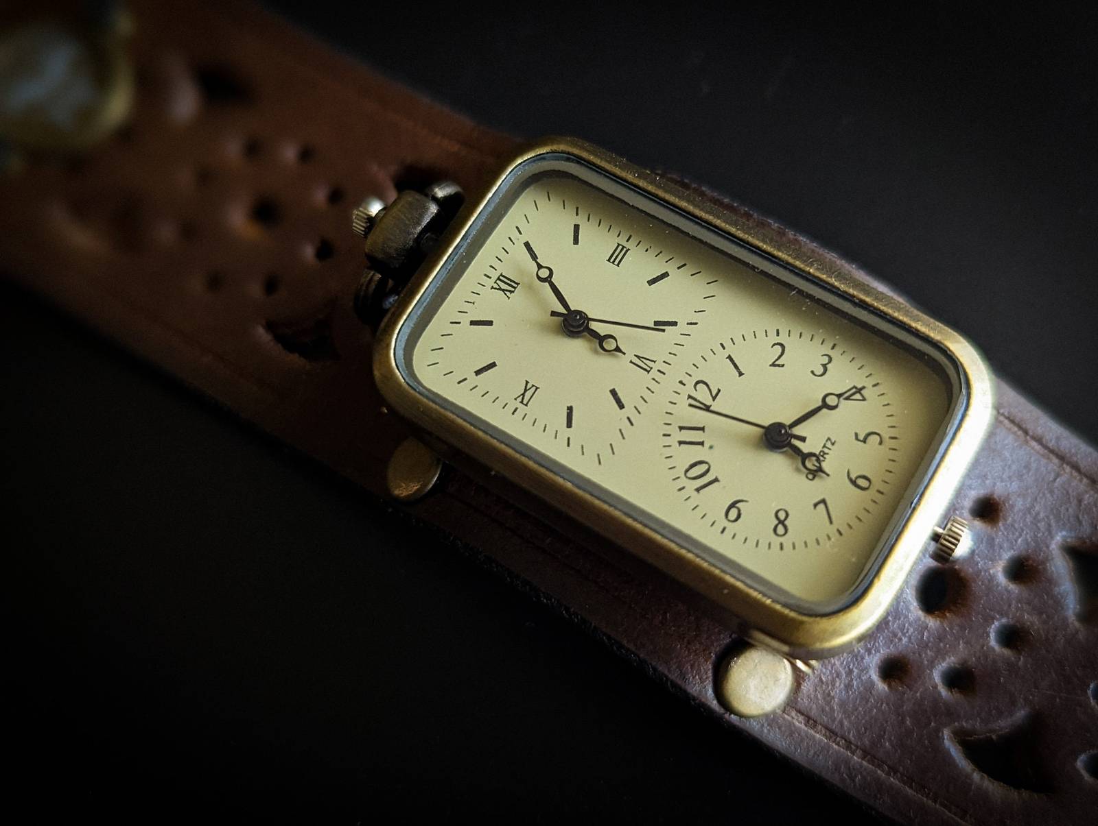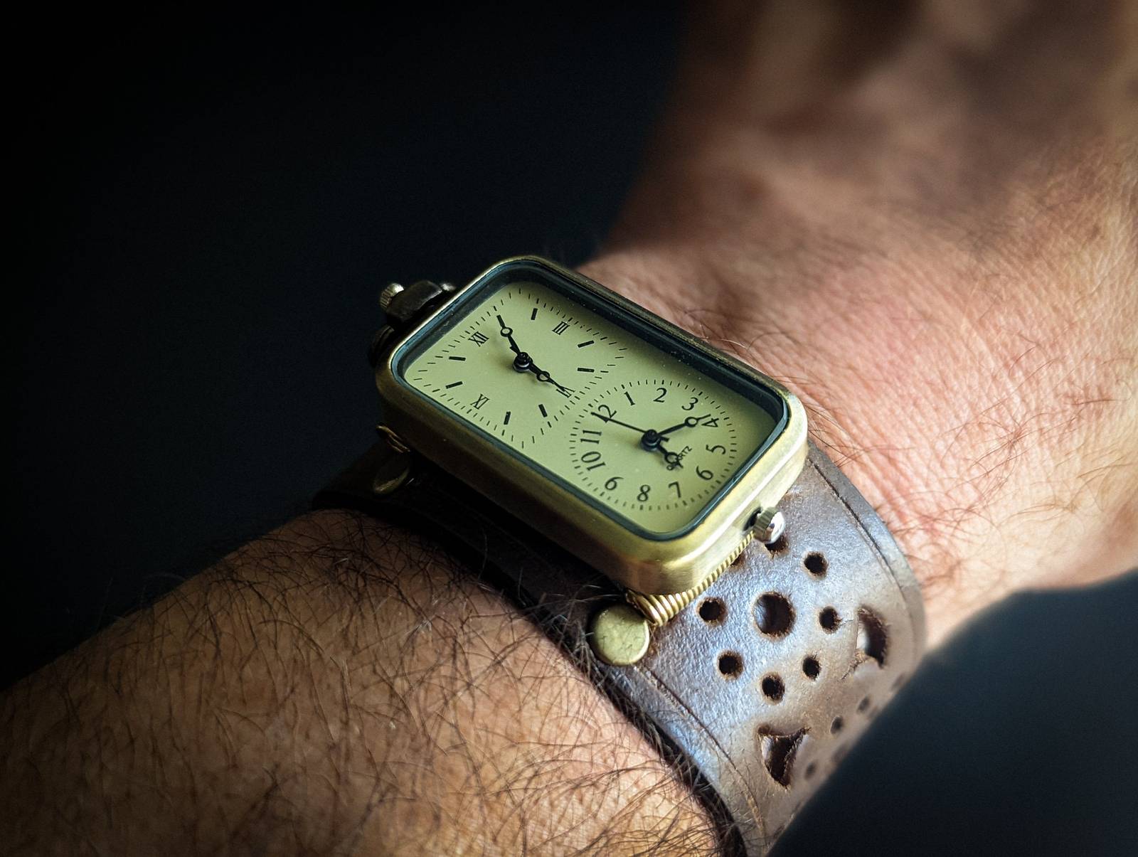 Double Time Steampunk Genuine Leather Bracelet, Watch cuff bracelet, Steampunk C