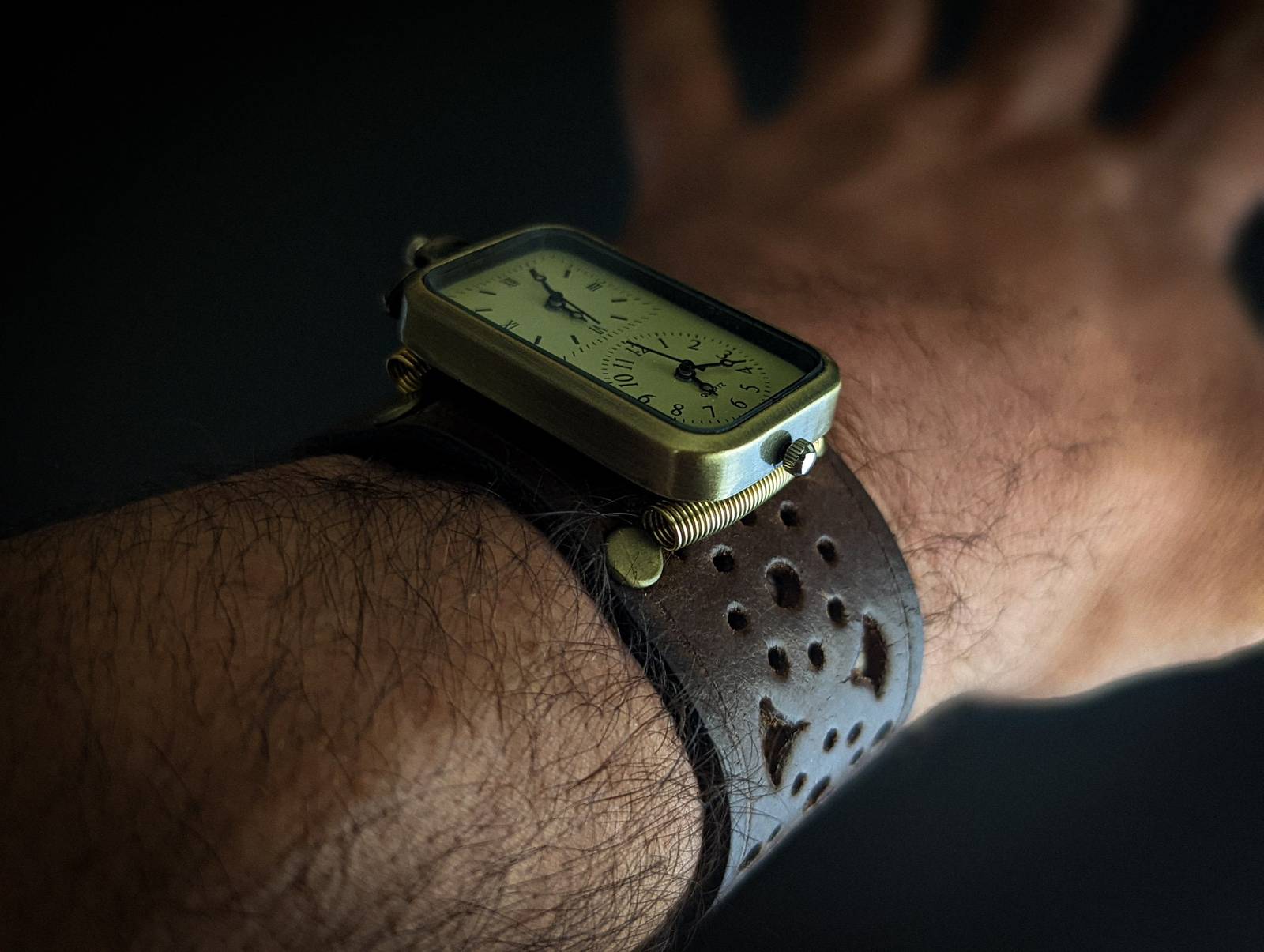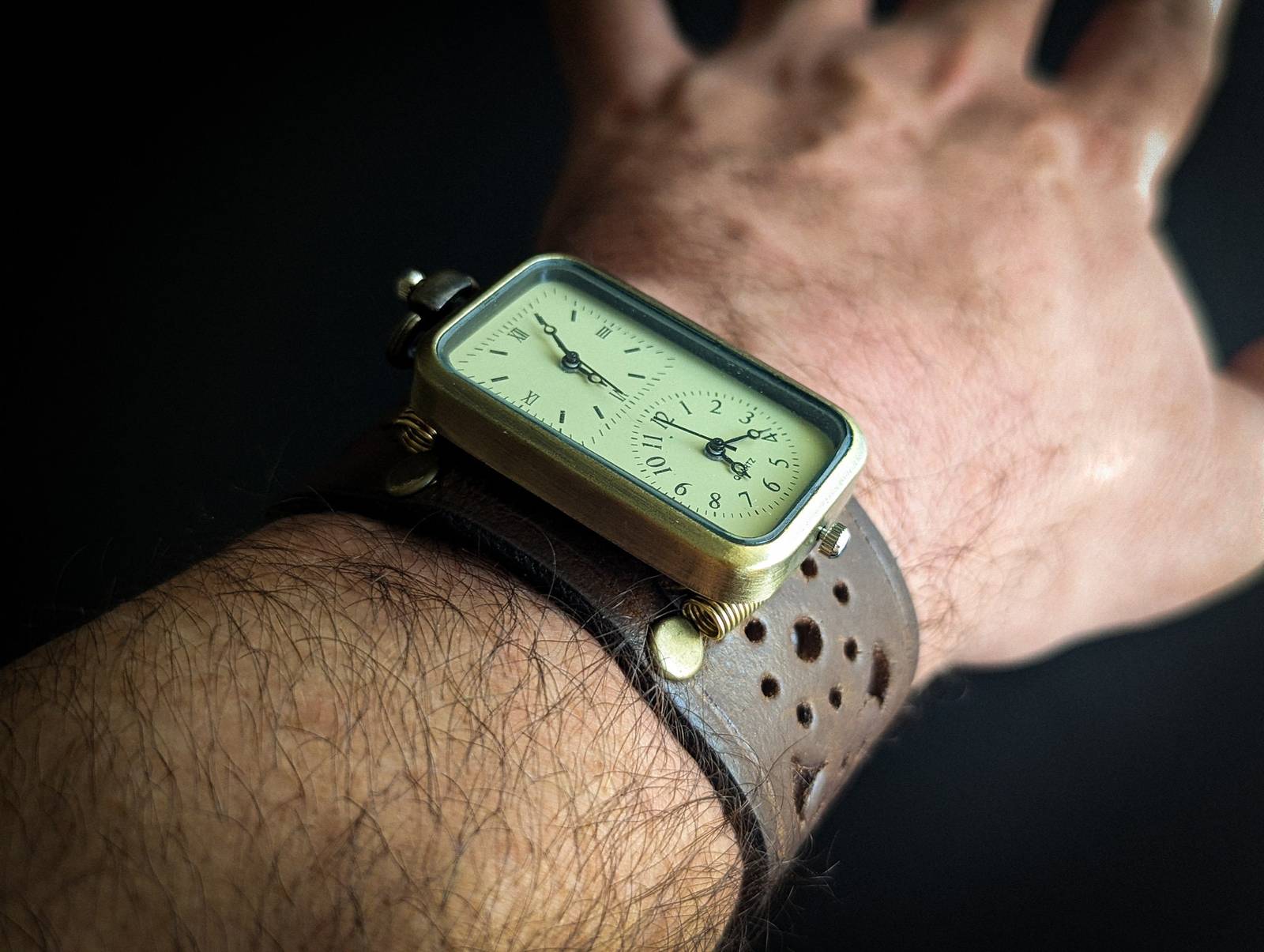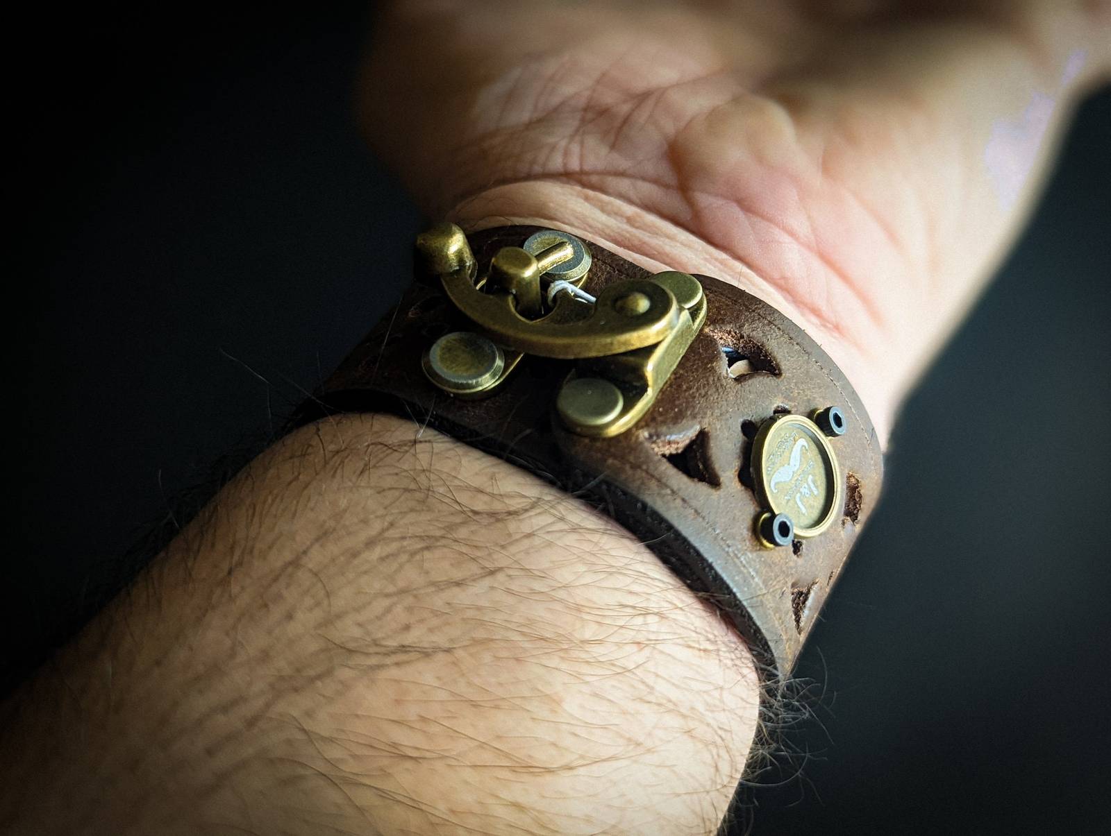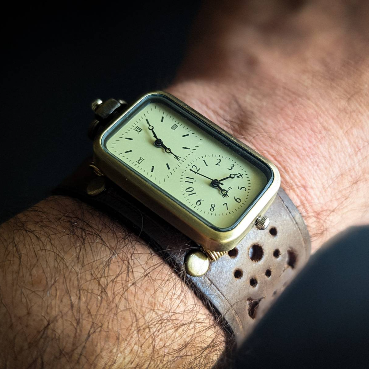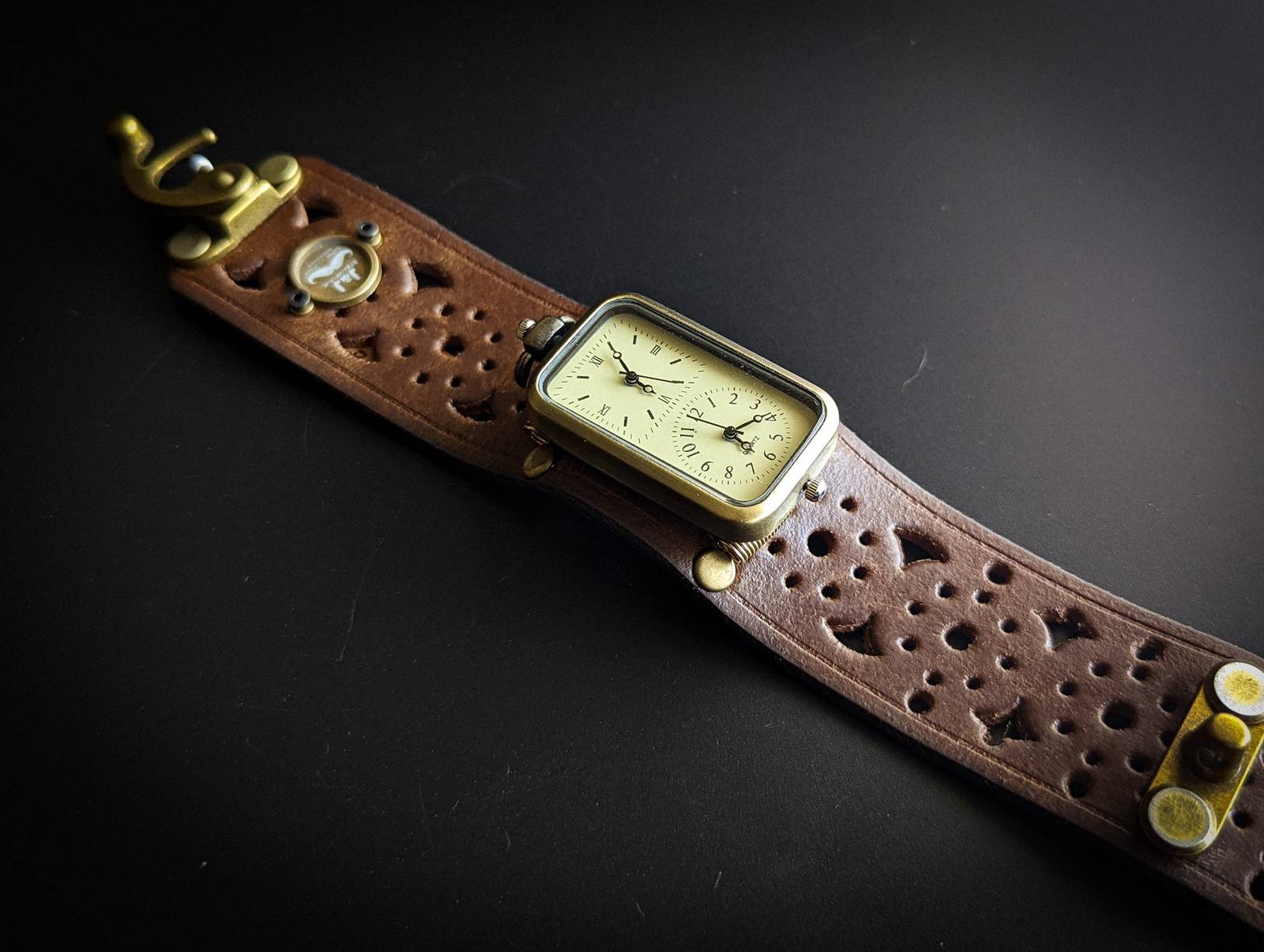 Steampunk watch in genuine leather second layer. Watches are battery operated.