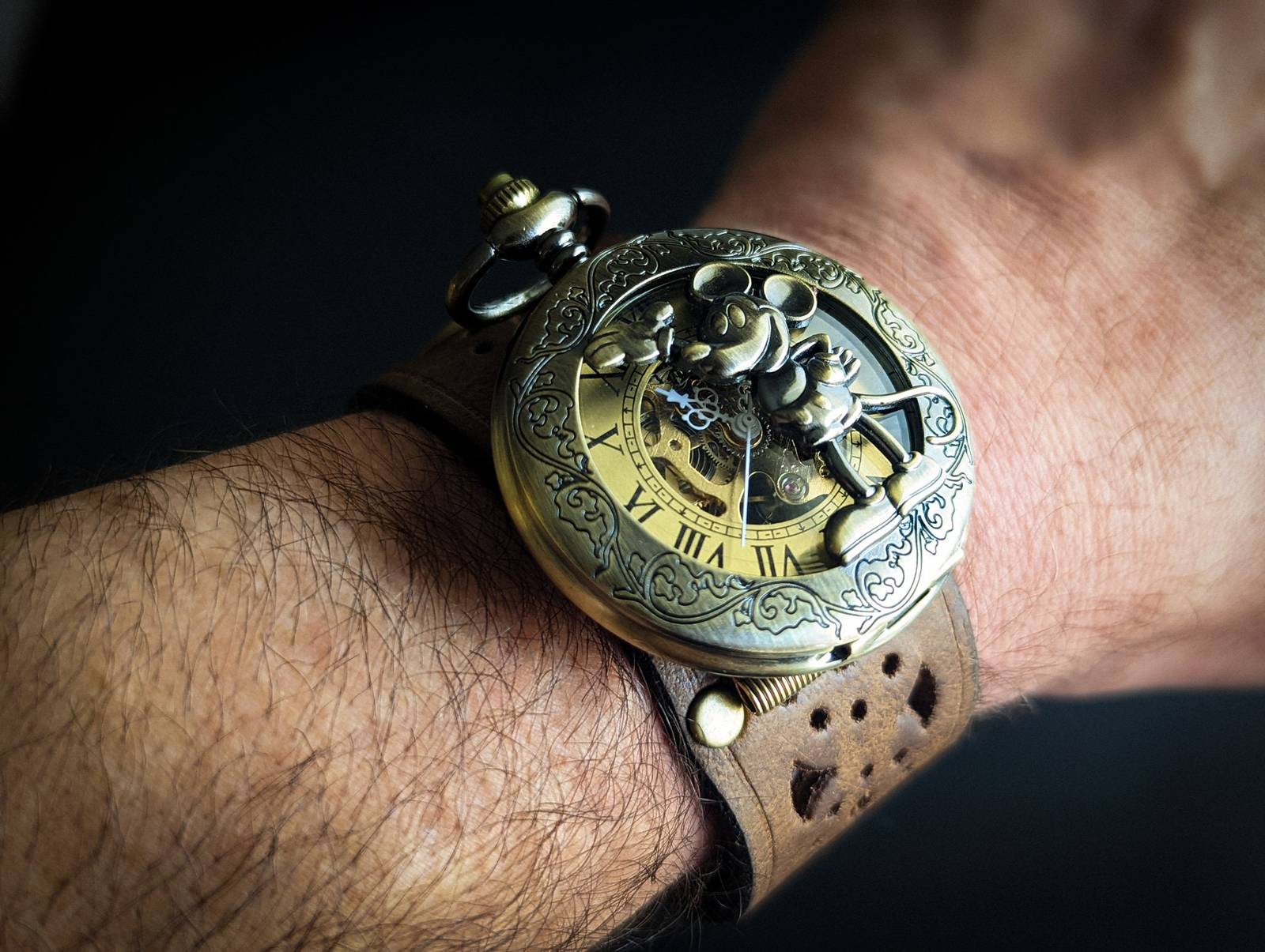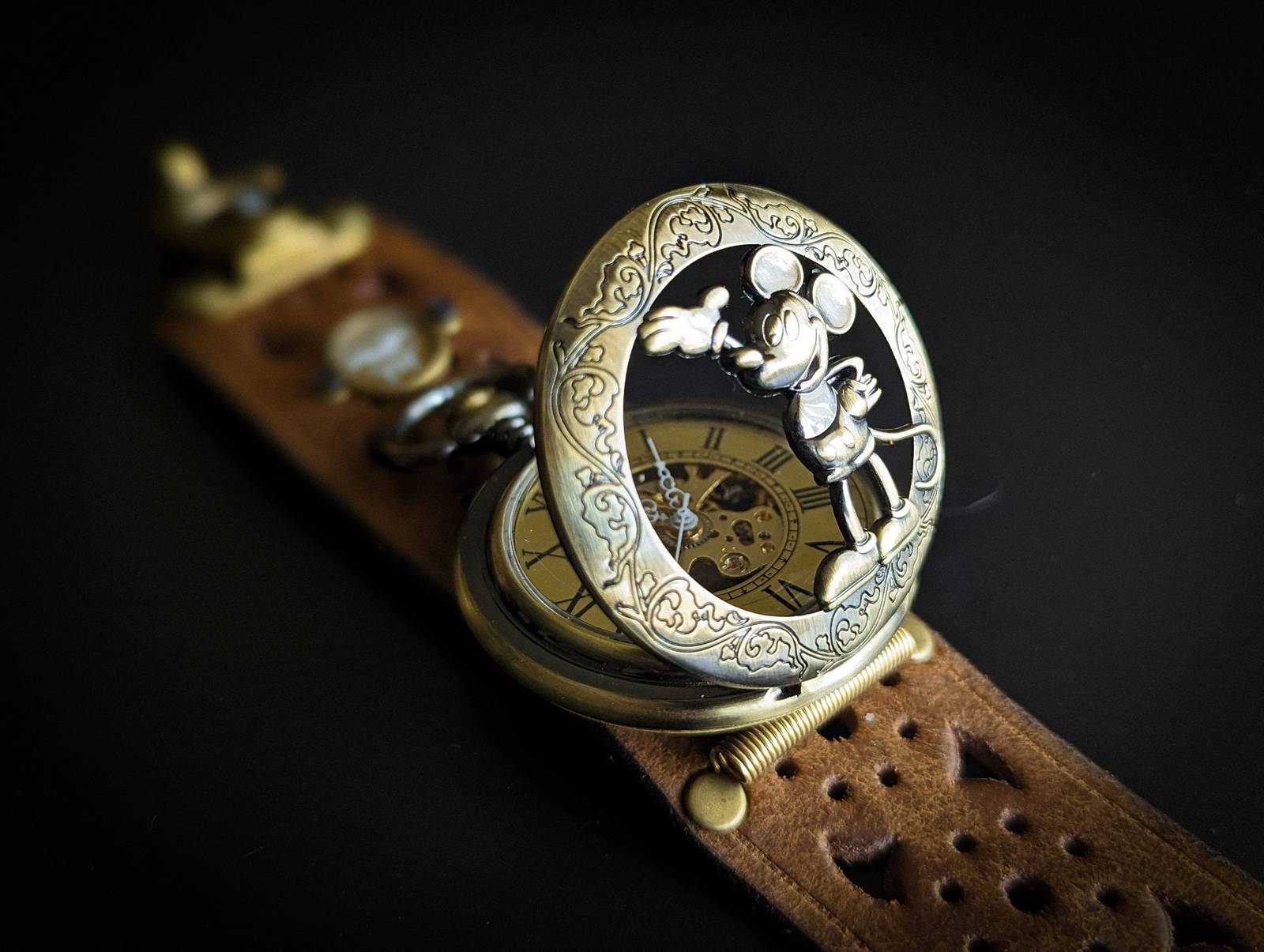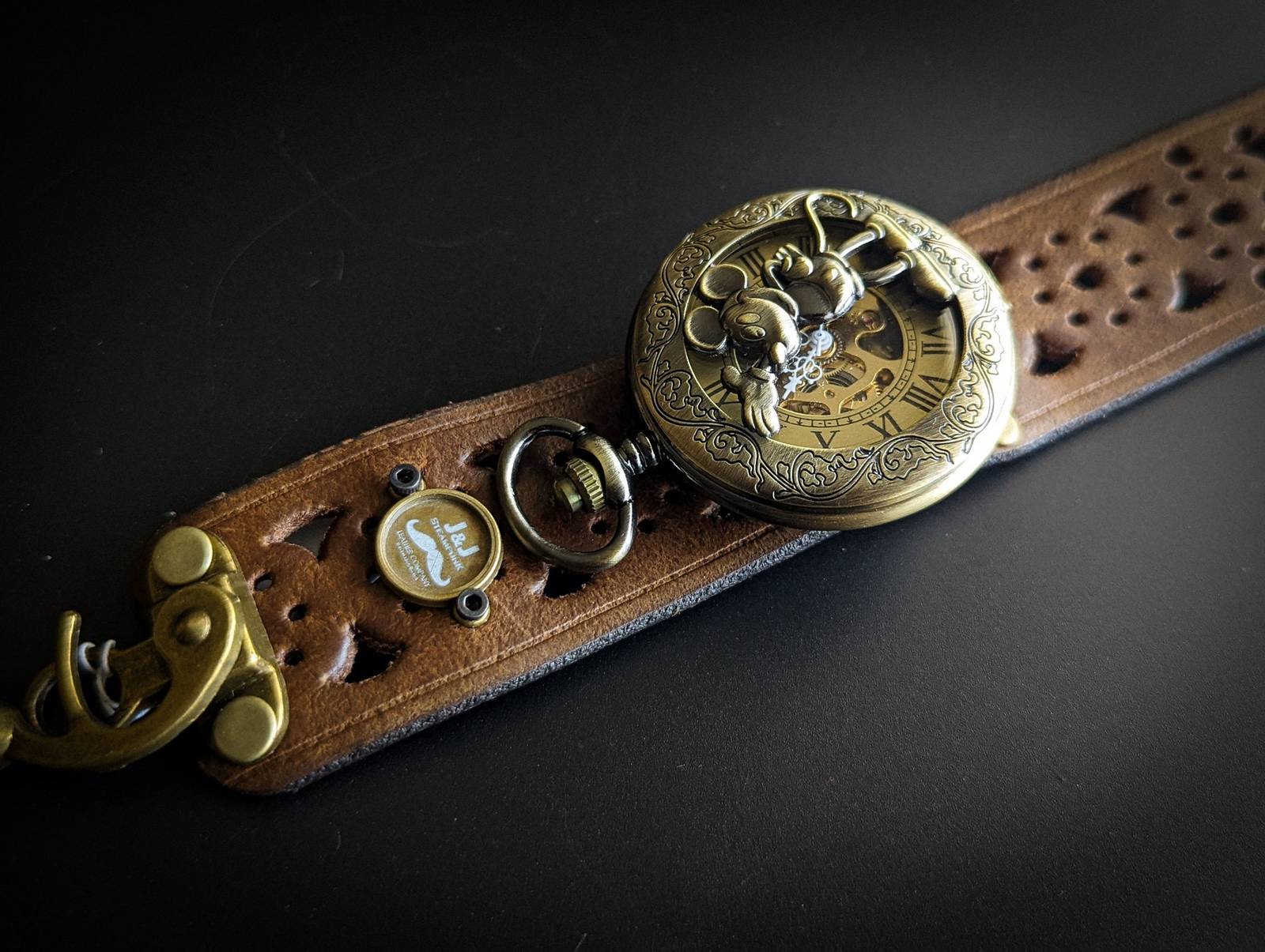 Disney, Mickey Mouse Steampunk Movement watch, Steampunk wristband, Steampunk bracelet, Leather bracelet, Leather wristband, Steampunk cuff, Steampunk cosplay, Cyberpunk wristwatch