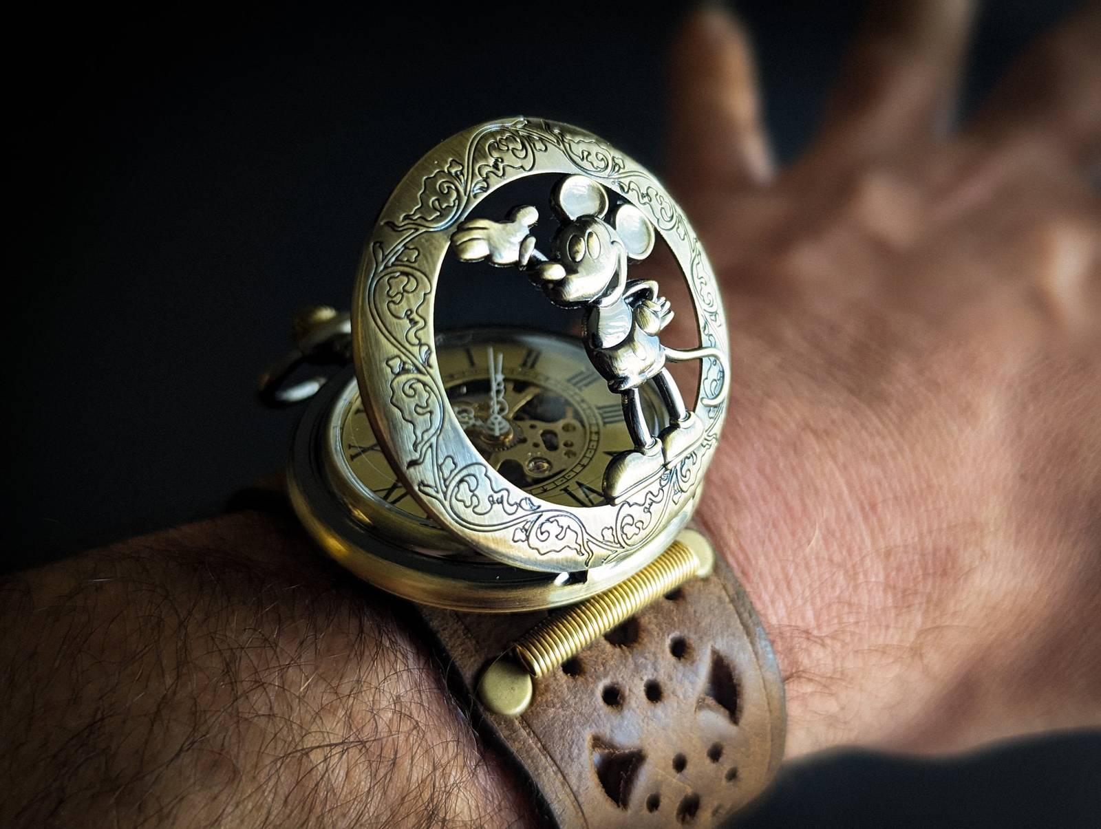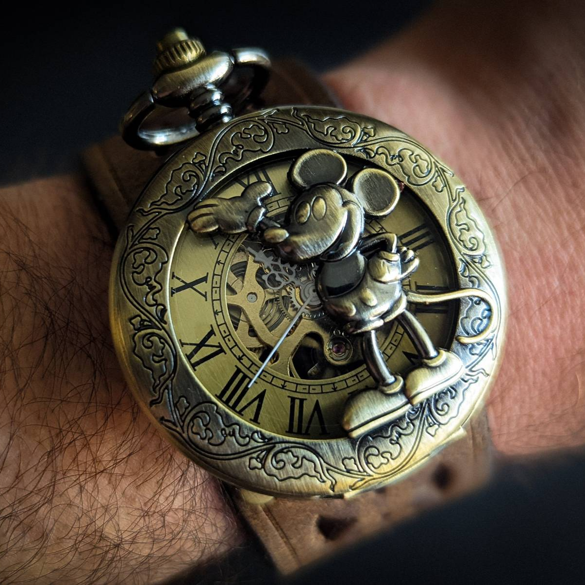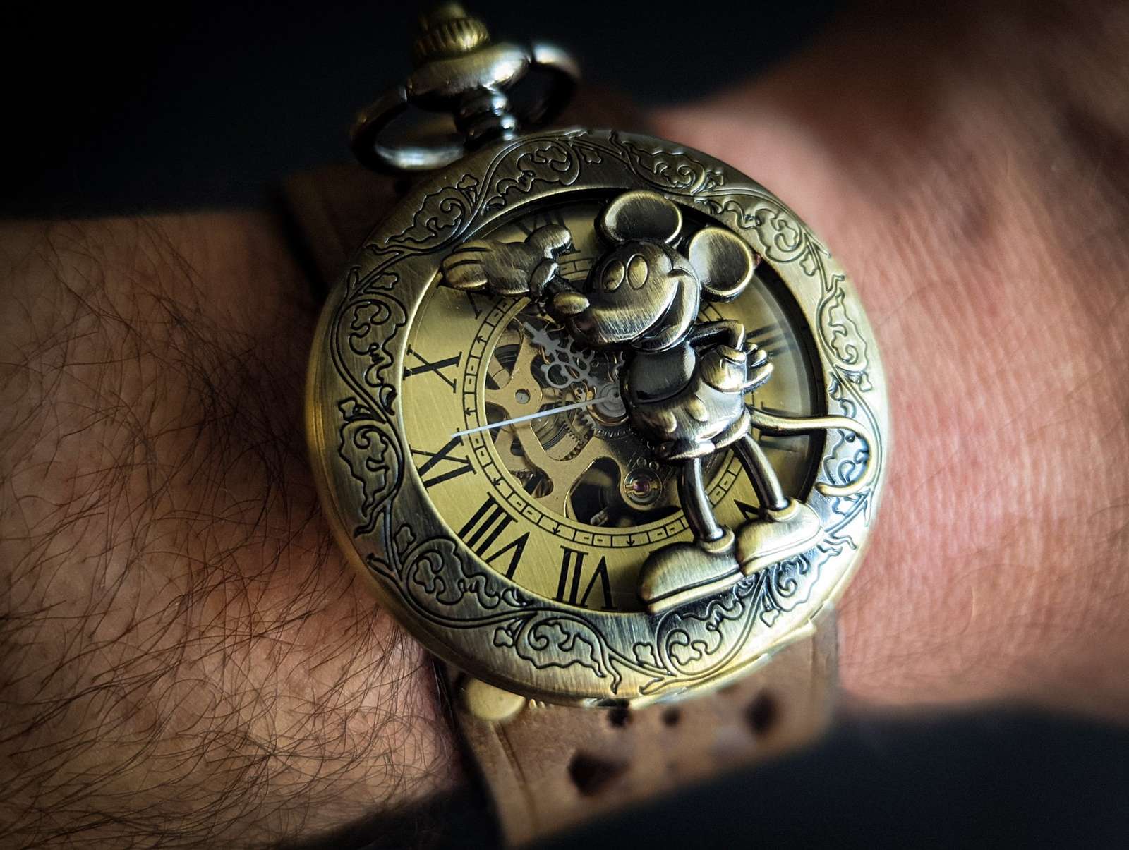 MICKEY MOUSE Movement Watch Steampunk Cuff, Mickey Steampunk wristwatch, Genuine