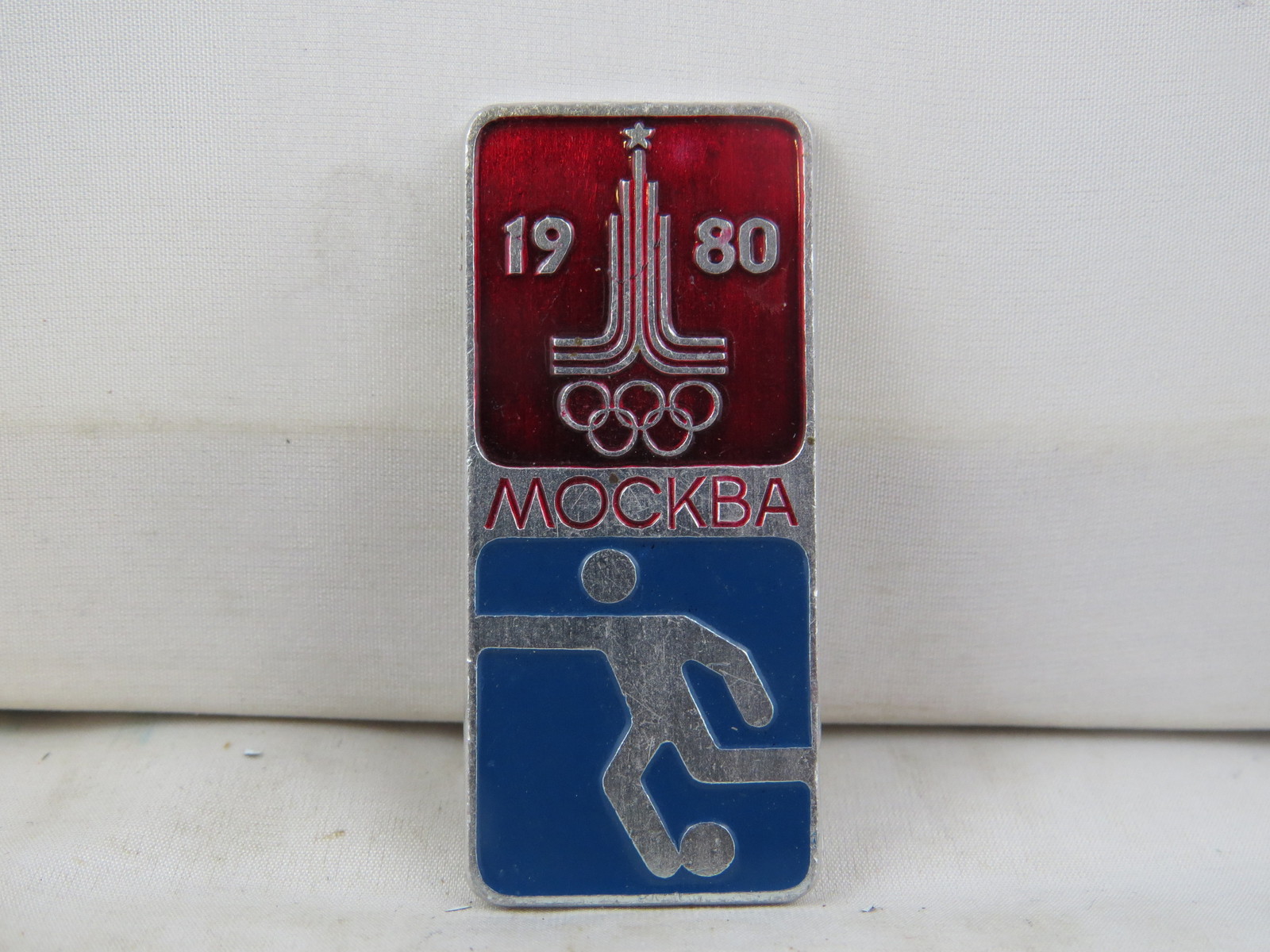 Up for sale is a vintage summer Olympic pin. It is from the 1980s Summer Olympics which were held in Moscow. The pin has a silver base colour with the upper portion of the pin has the official 1980 Summer Olympic logo. The lower portion of the pin has the soccer event logo. What a great addition to any pin collection.